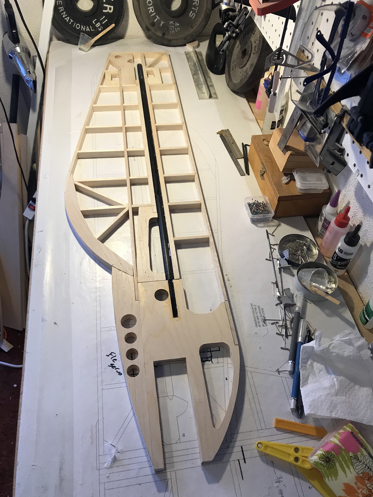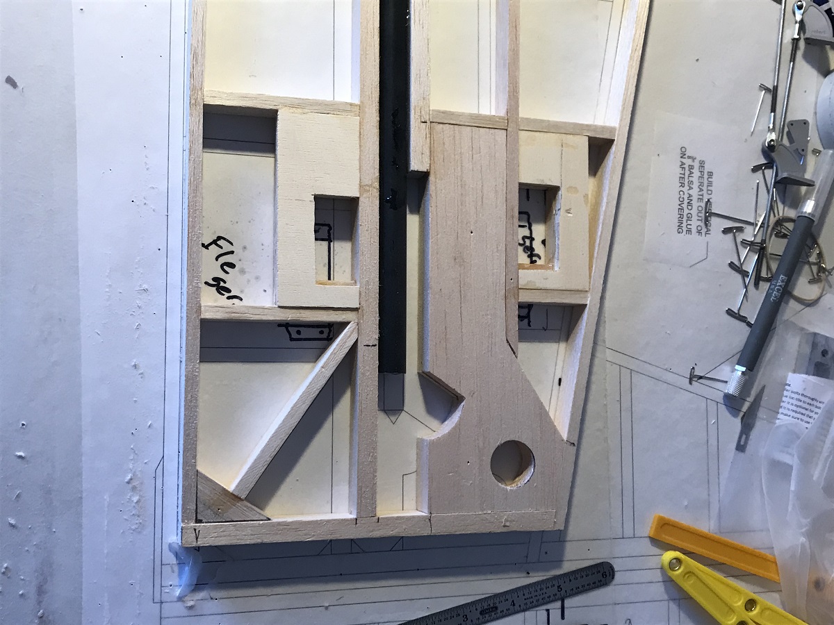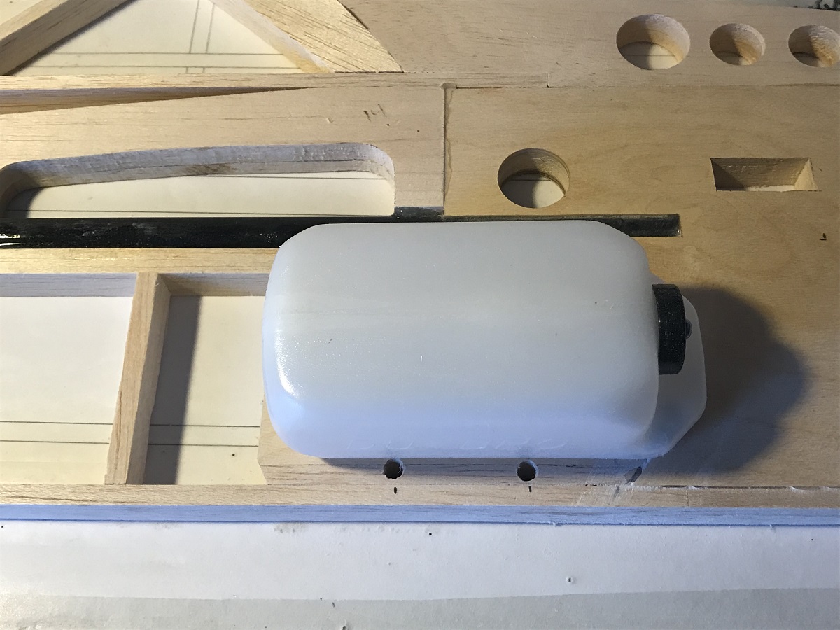 Ok, made my first mistake!! I used the ProX as a template for the throttle servo before checking the position of the root wing rib. Cut the hole in exactly the wrong spot. I had to fill in the hole and move the servo down a bit. I also built the tank/ignition mount. I think I've got the fuse all done, except for gluing on the vertical fin. Might do that next.
