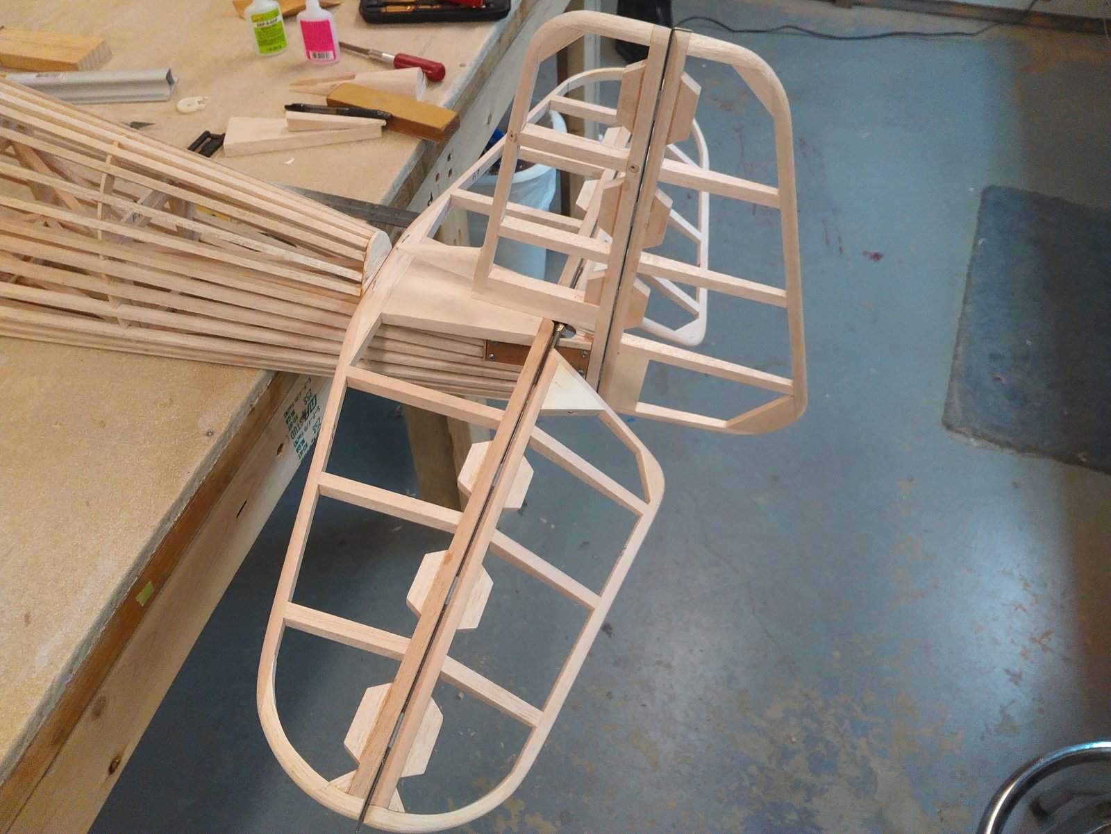 Now it's time for the tailwheel block, and as I'm looking at this picture I realize that I have stringers that are not of equal length...... Guess I know what the first task tomorrow is!