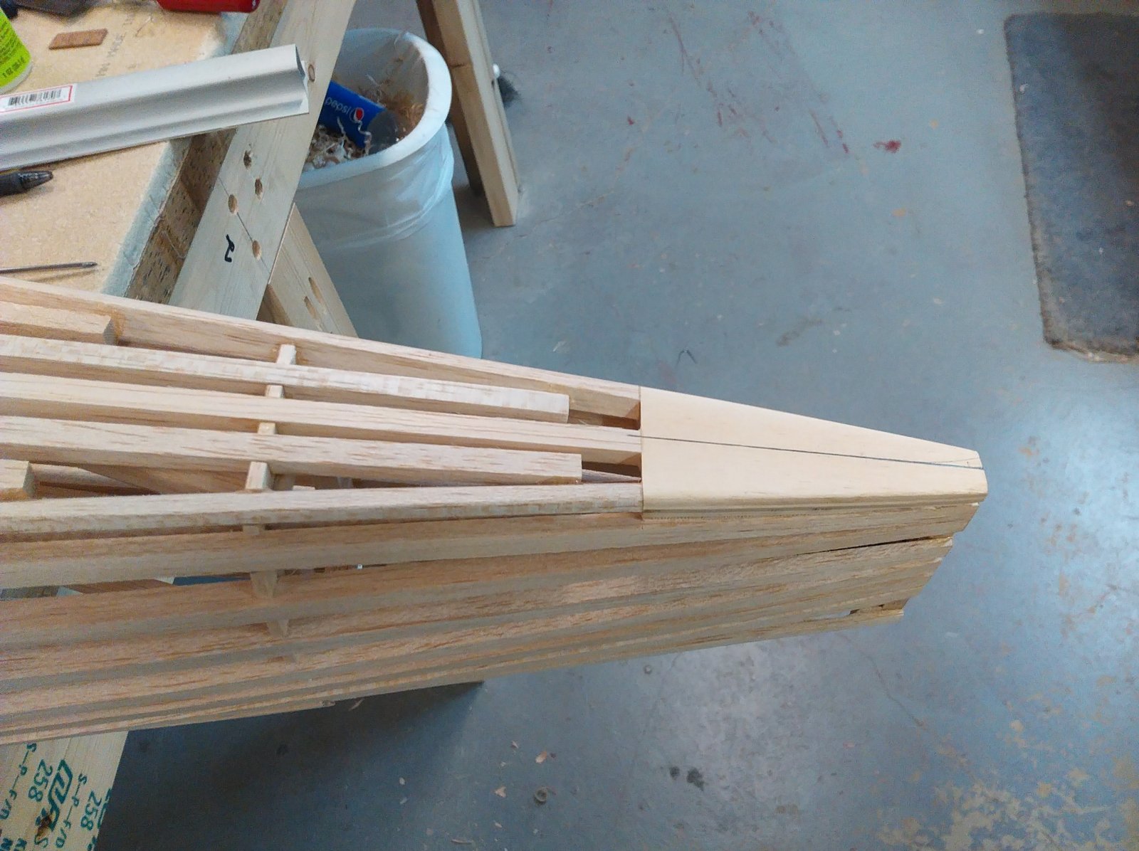 I then cleaned up the filler block and pinned it back in place, I should be able to use the same block but I've decided to not glue it back on until I glue the stab in place.