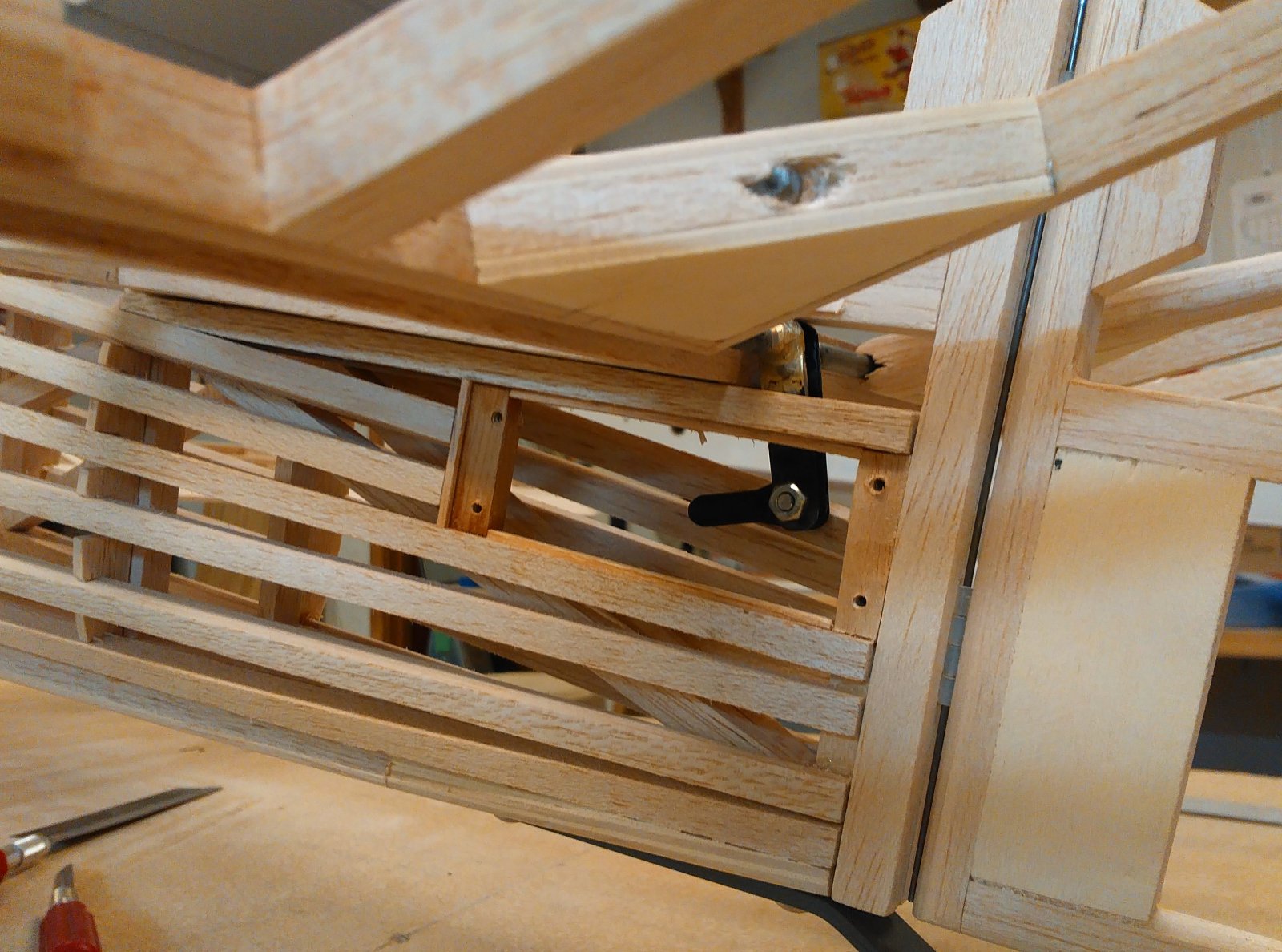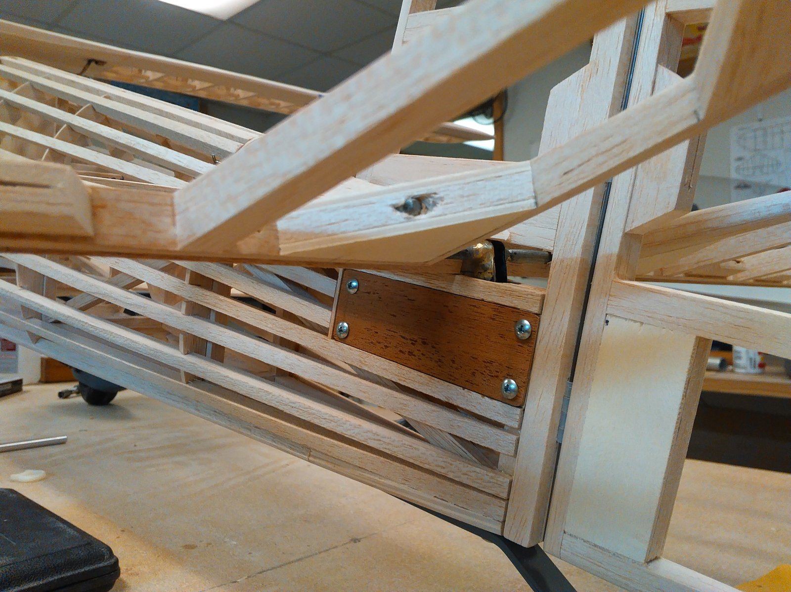 Elevator horn Access hatch finished, I may counter sink those screw holes and use flush head screws but we'll see, it is made of an awfully thin piece of mahogany.