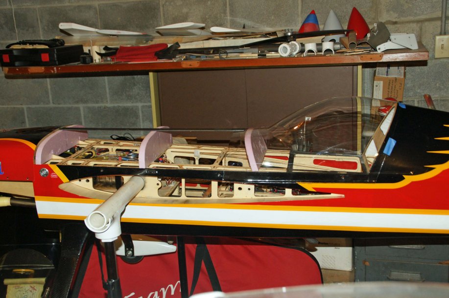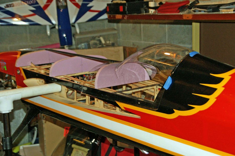 I'm just in the initial stages...canopy rough cut and some foam bulkheads cut. I plan on doing a combo of 1/8 lite ply and pink for the formers, plus a ply stringer/spine running along the deck center-line back to the canopy (where the ruler is). I'll use pink foam stringers inletted into the foam bulkheads for additional support for the balsa sheeting. Then light glassing over the balsa, fill and paint.