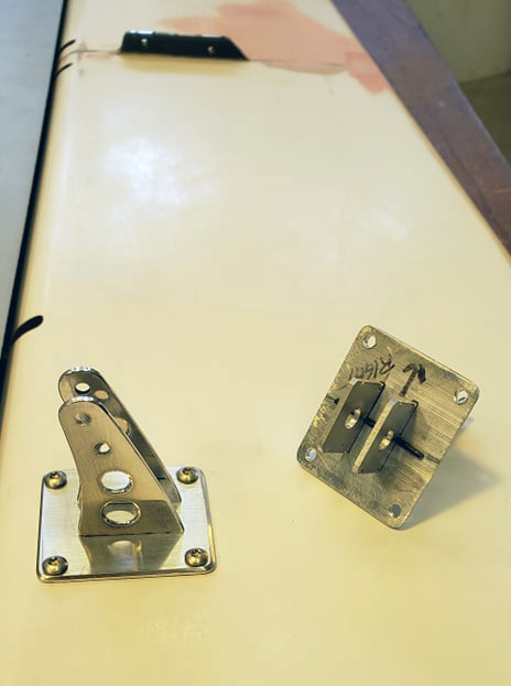 More than enough torque and like the brackets they are never coming out. You hang the plane of one bracket and then hang on the plane and they will still be connected.Well....I guess I'm fully committed to one servo per aileron! I'll be using a single Futaba A700 on the inboard locations only. These put out 1000 in/oz of torque which will be plenty. To help assure that the single control horn handles the loads, I made up some aluminum mounting plates that capture each horn. There's a steel cross-pin through the control horns just beneath the surface of the pate. These assemblies will be Hysol epoxied in place, including the 4 corner screws that are threaded into the existing hardwood block inside the aileron.
