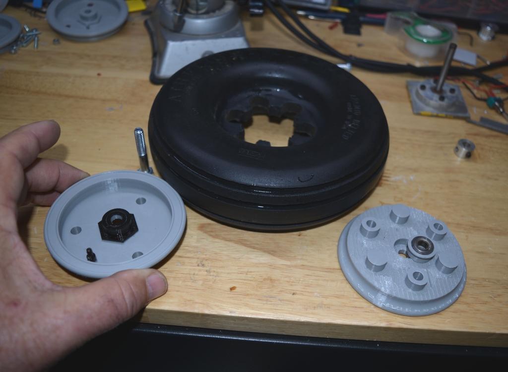 The making of the Mushshak scale wheels with non functionning disc brake, just printing now the caliper. The tires you see here are not printed but commercial by sullivan at nearly 7 inches