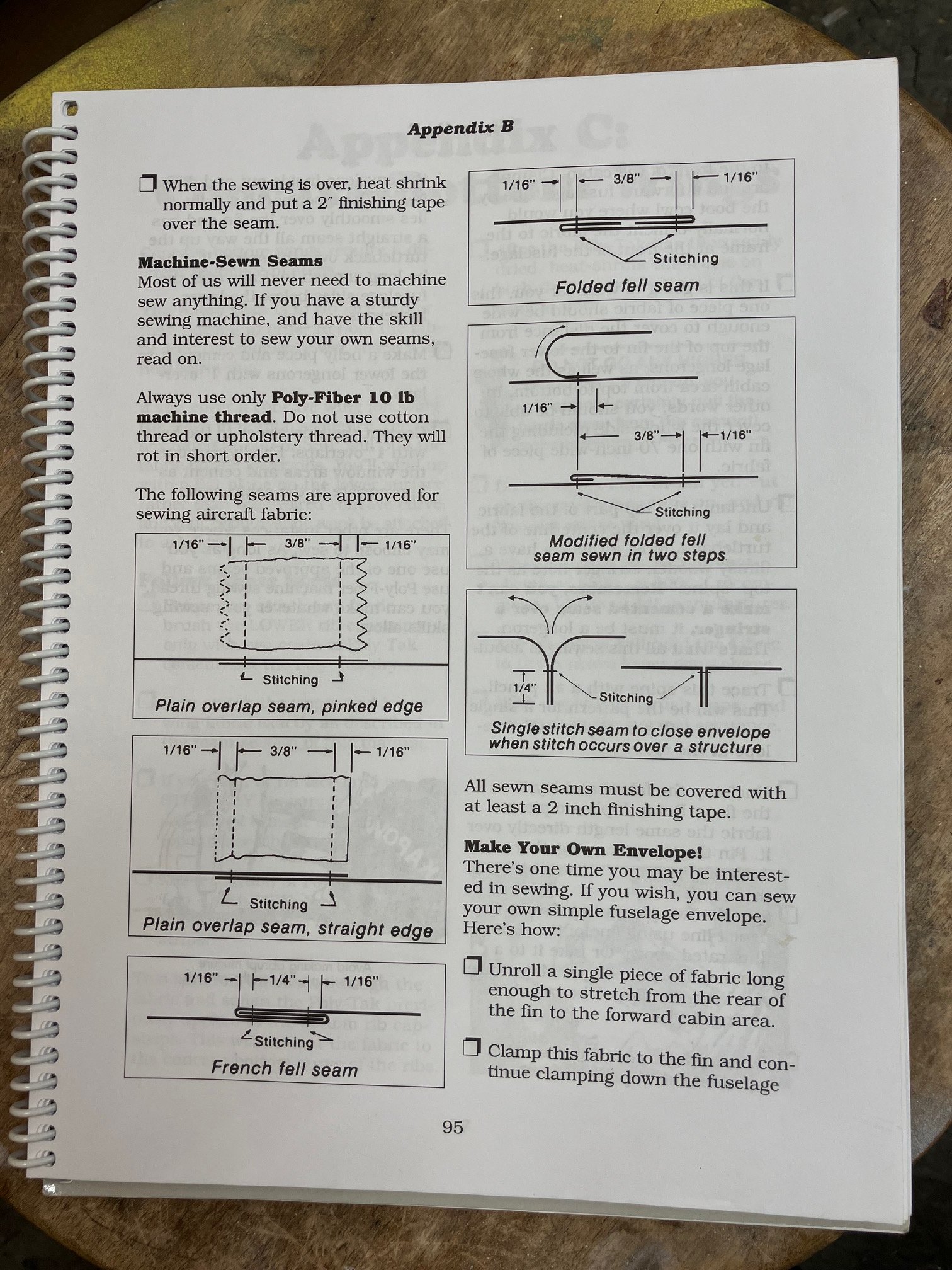 Very interesting! I’ve seen several envelopes sewn for full scale but I noticed something interesting on the drawing posted on the other thread.Here are the seams referenced in the Stits manual, see the envelope requires only a single stitch. I think on the next one I might try the seam right above the single stitch, the modified folded fell in two steps