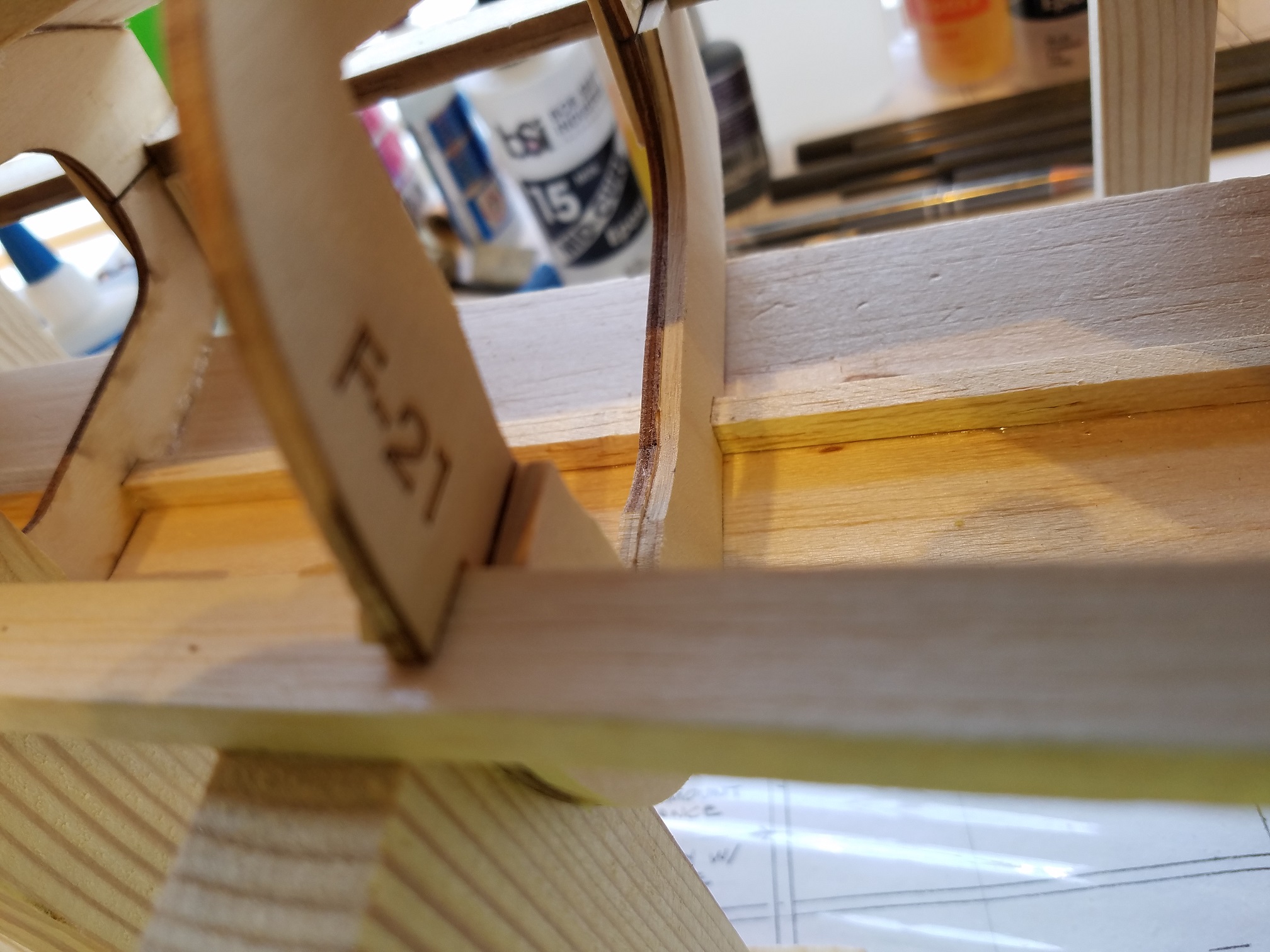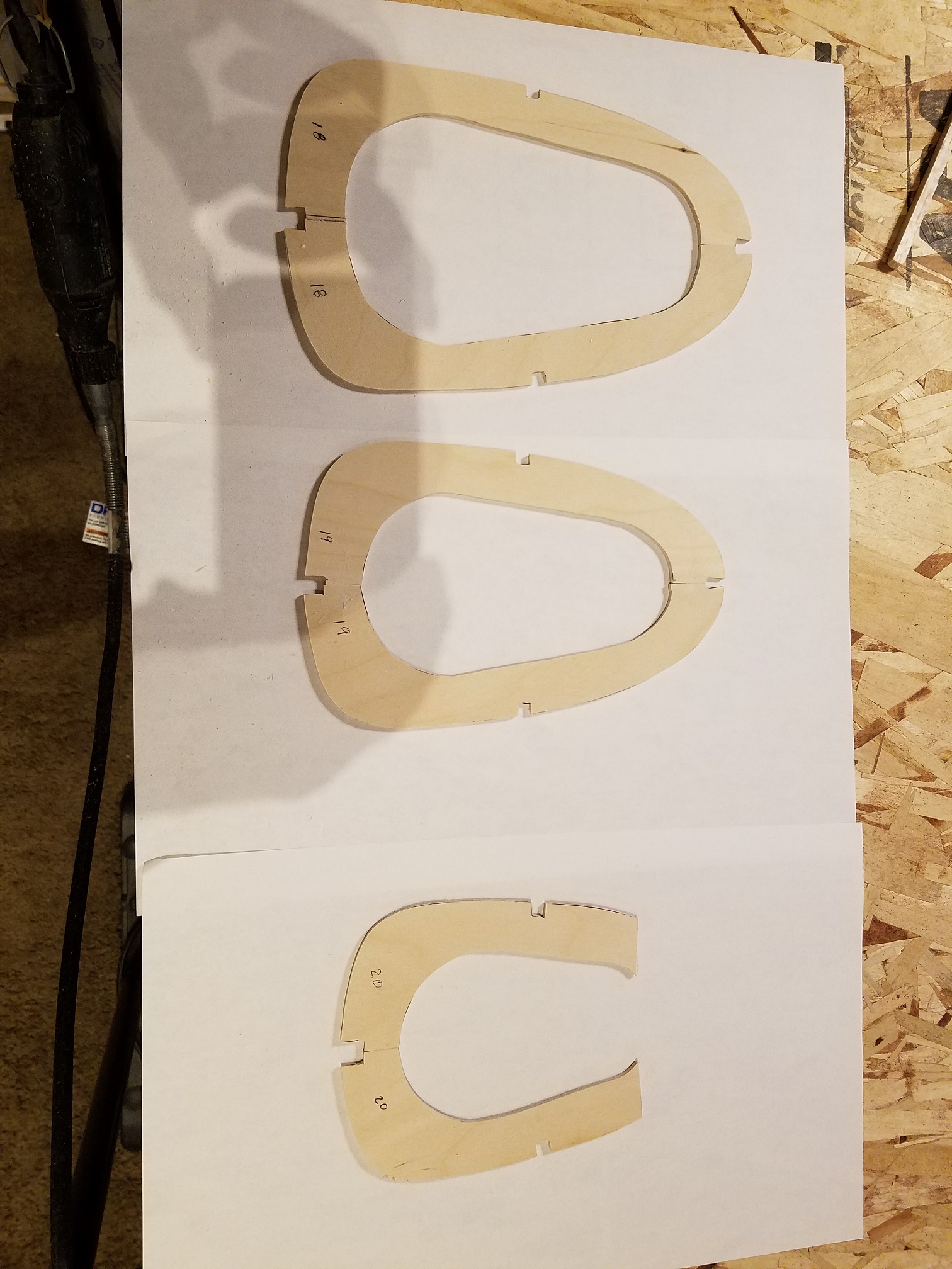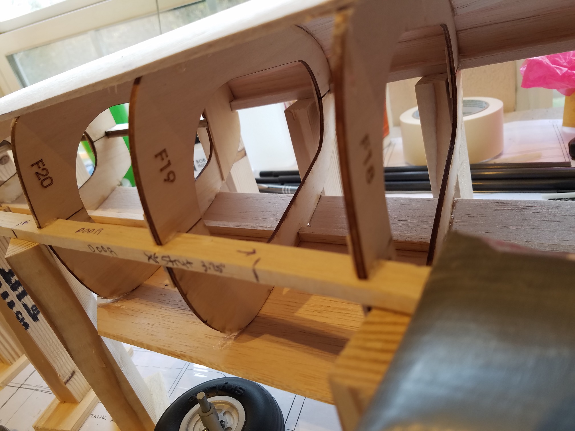 These are the fuse former doublers I cut to be placed at F18, F19 and F20 to support the tail gear. Later I decided to change the location of the gear to keep it as scale as possible. This would include adding a doubler to F21 as well.