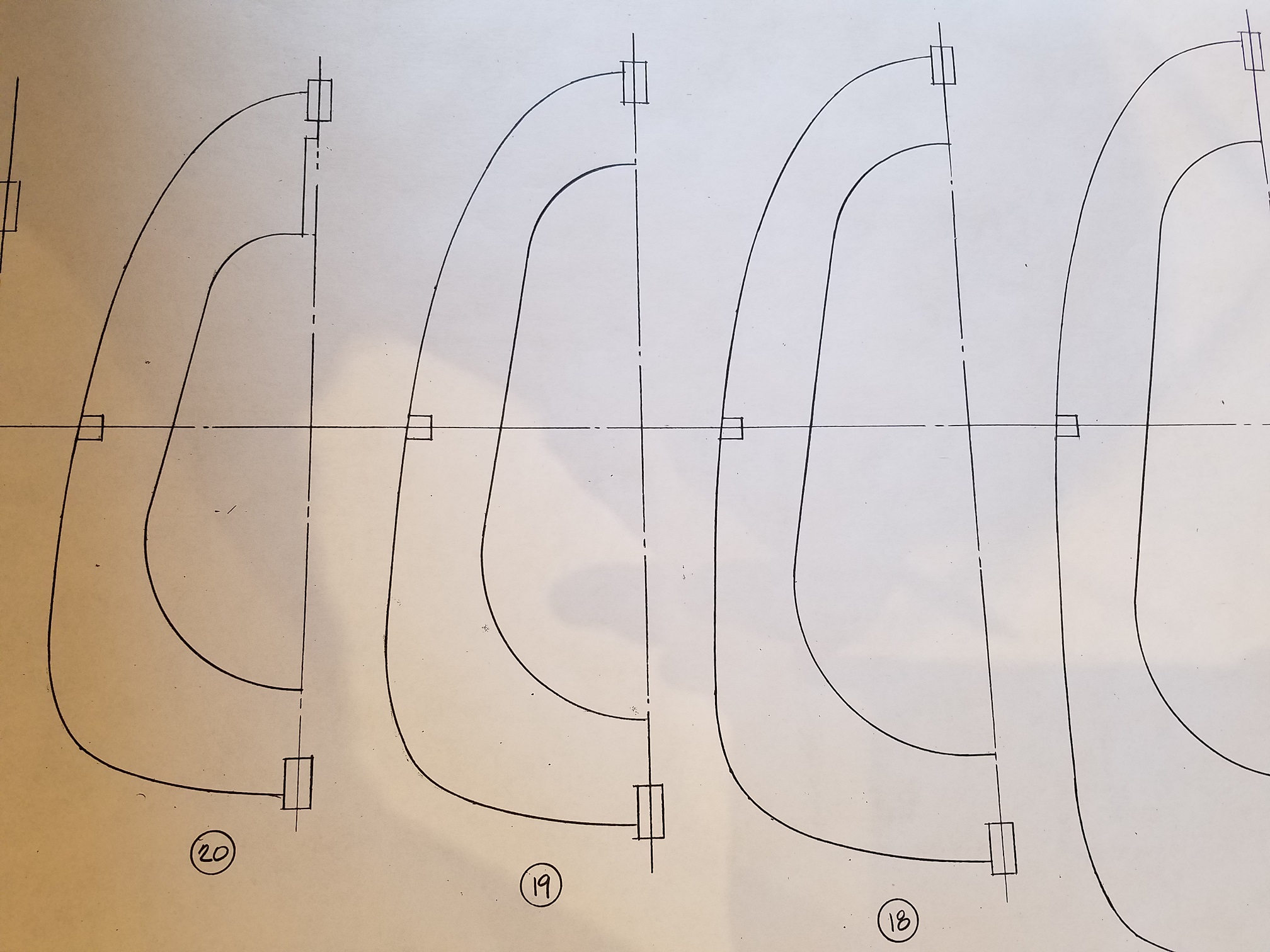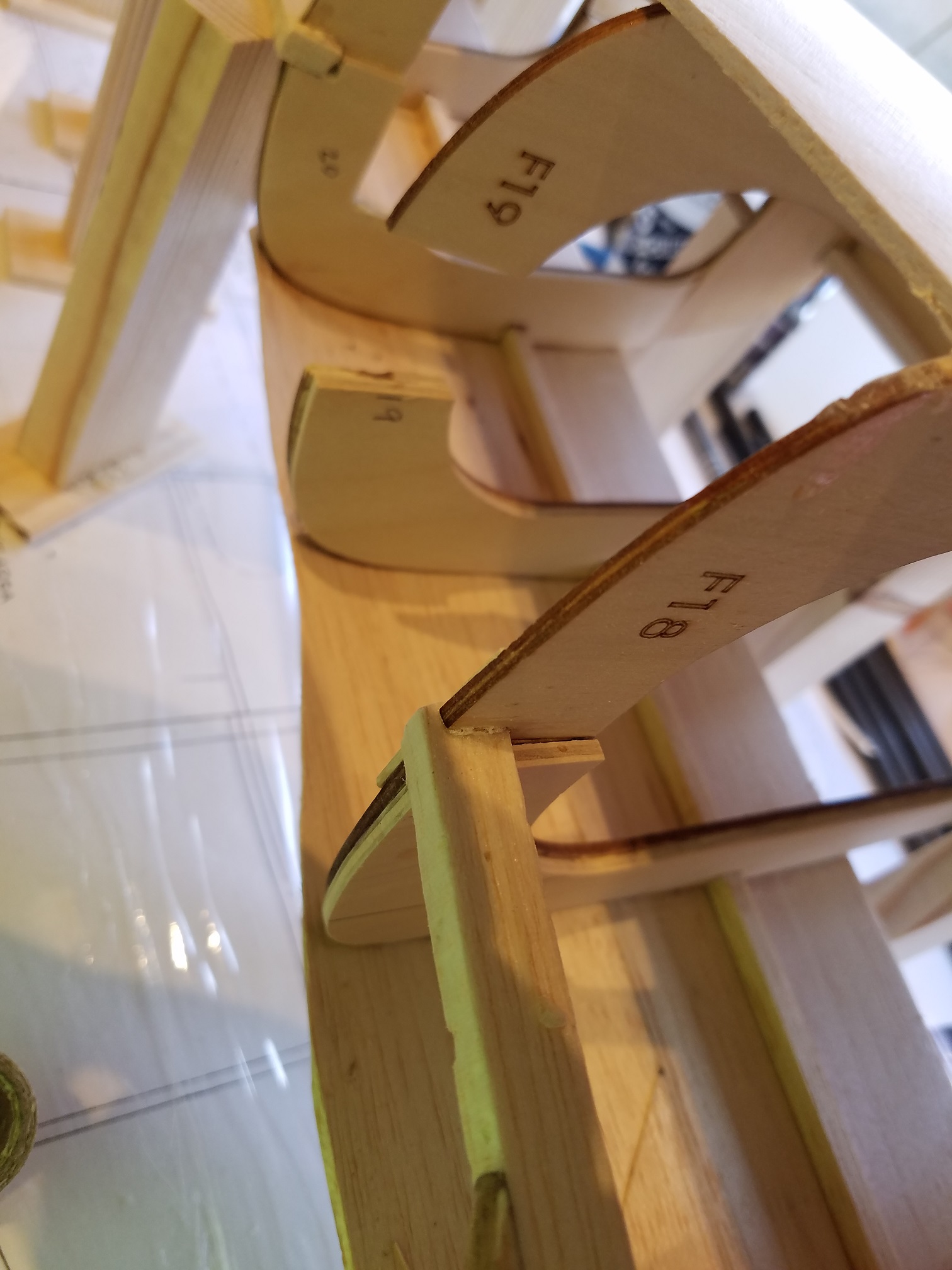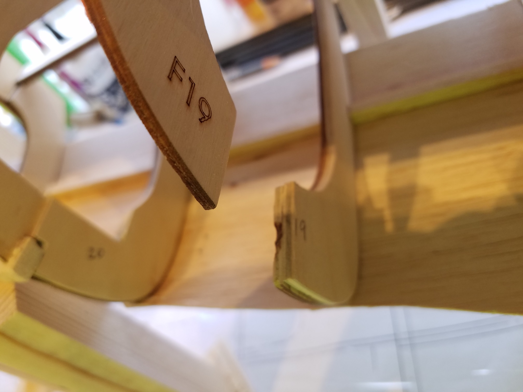 These are the fuse former doublers I cut to be placed at F18, F19 and F20 to support the tail gear. Later I decided to change the location of the gear to keep it as scale as possible. This would include adding a doubler to F21 as well.