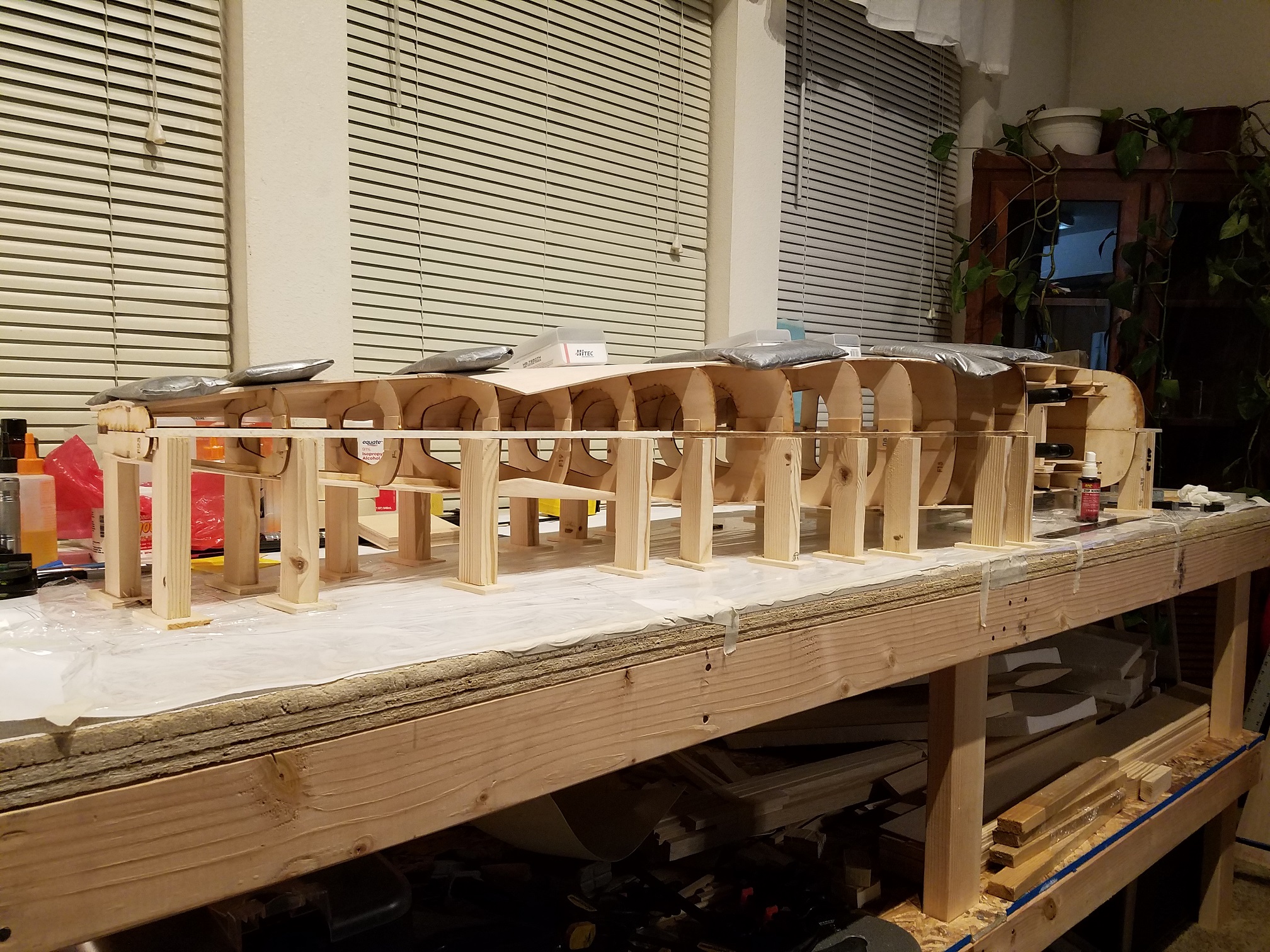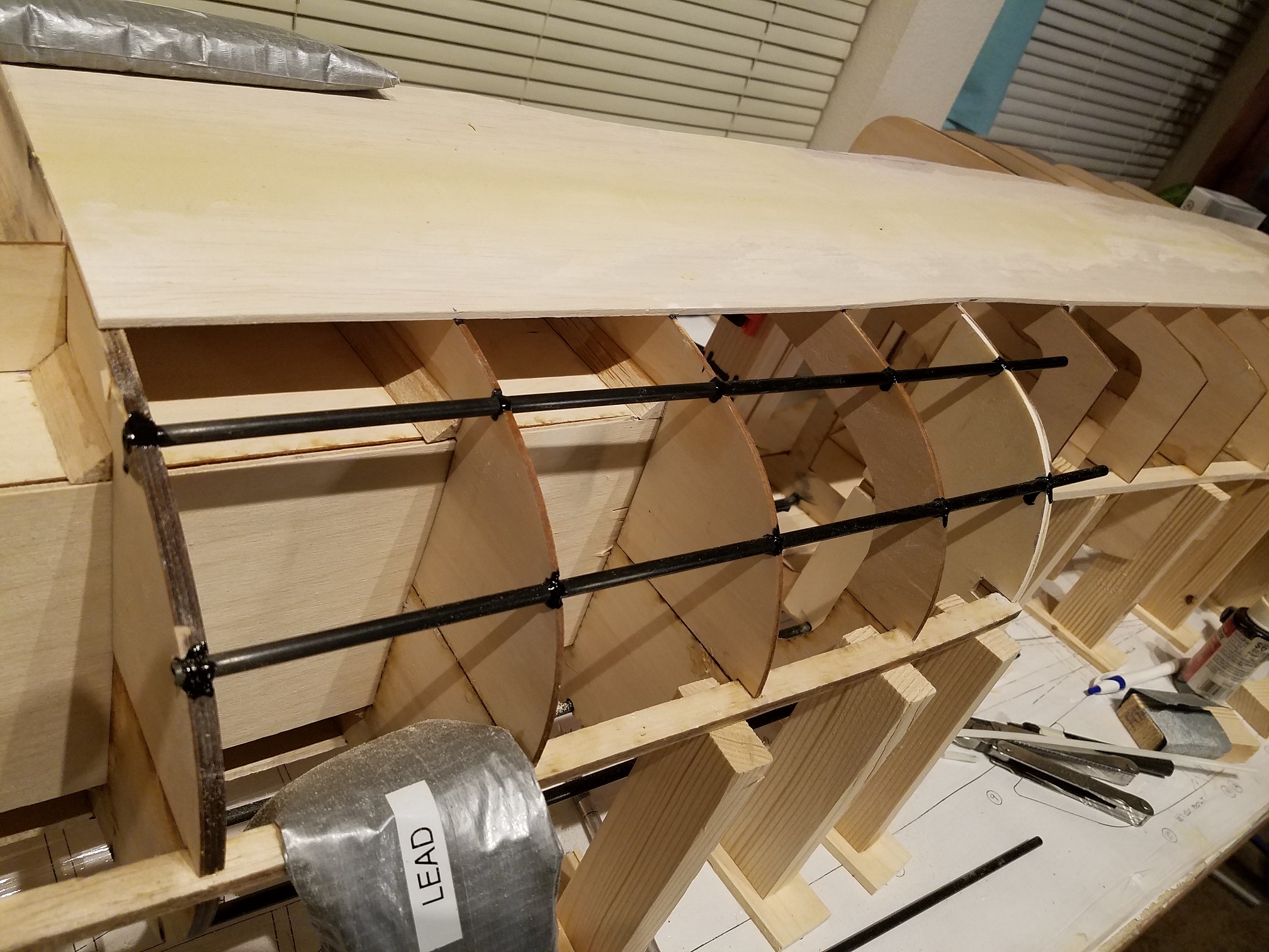 Supporting the middle of the formers while I add the carbon rods on the opposite side of the fuse.
