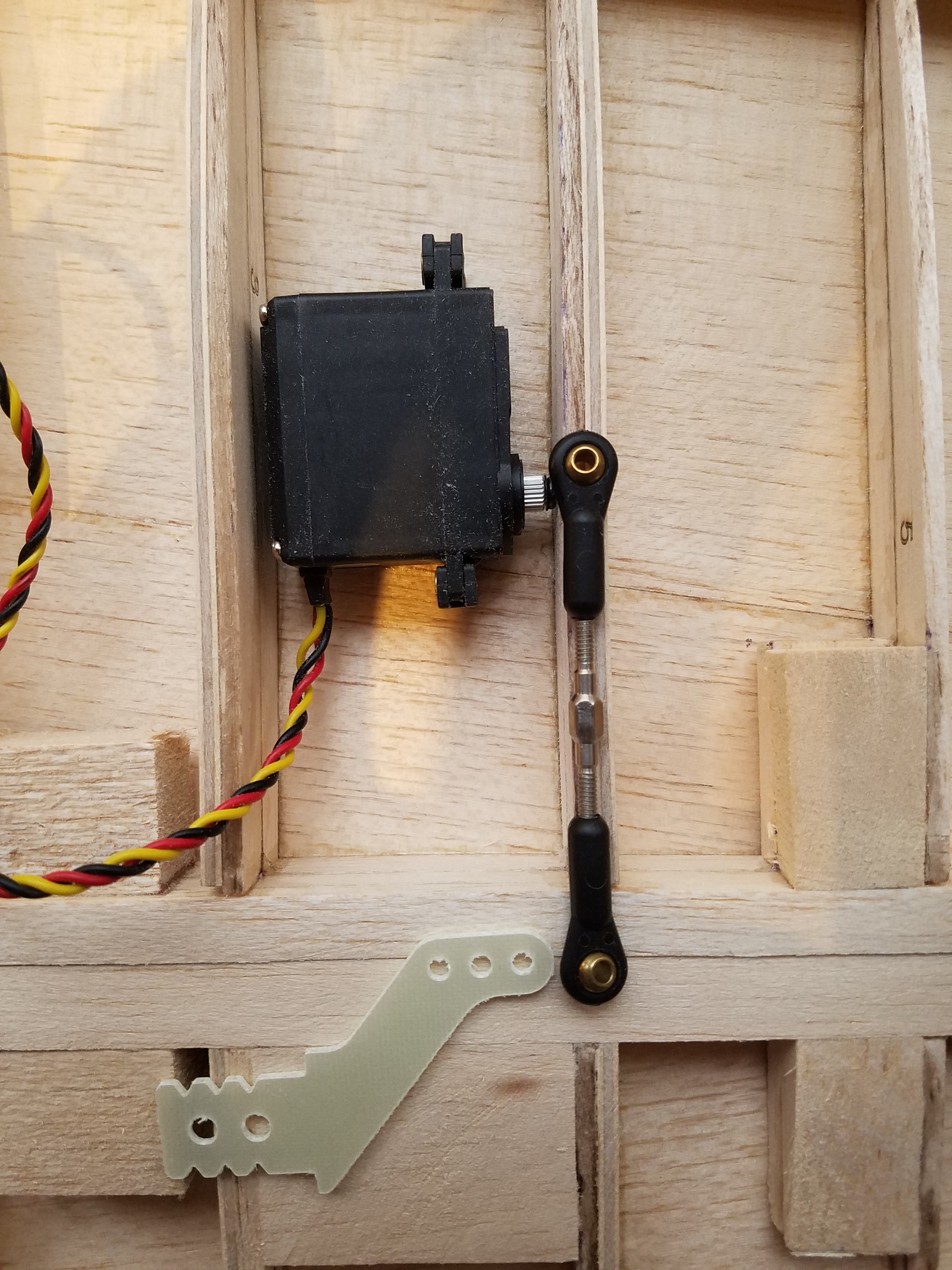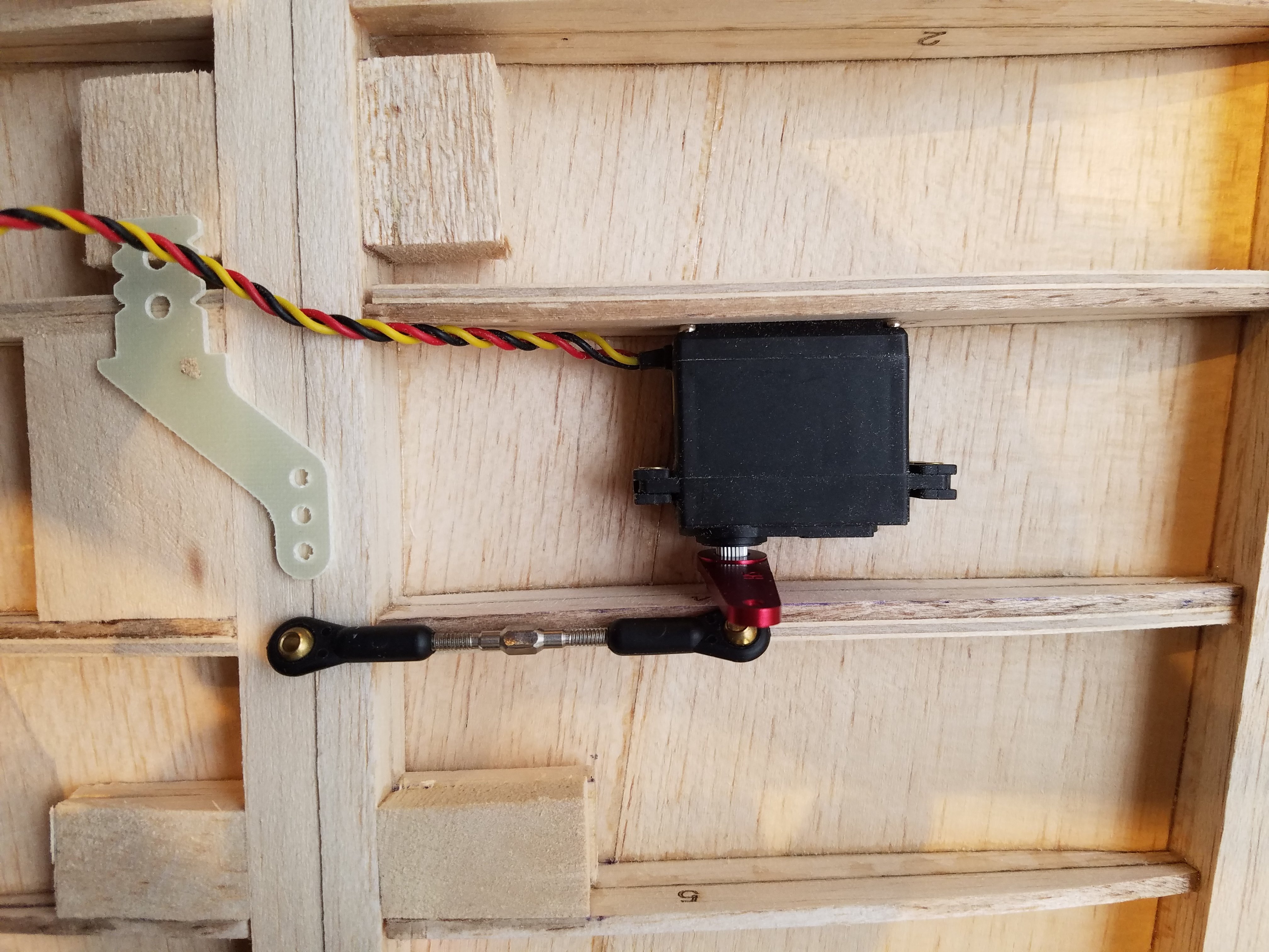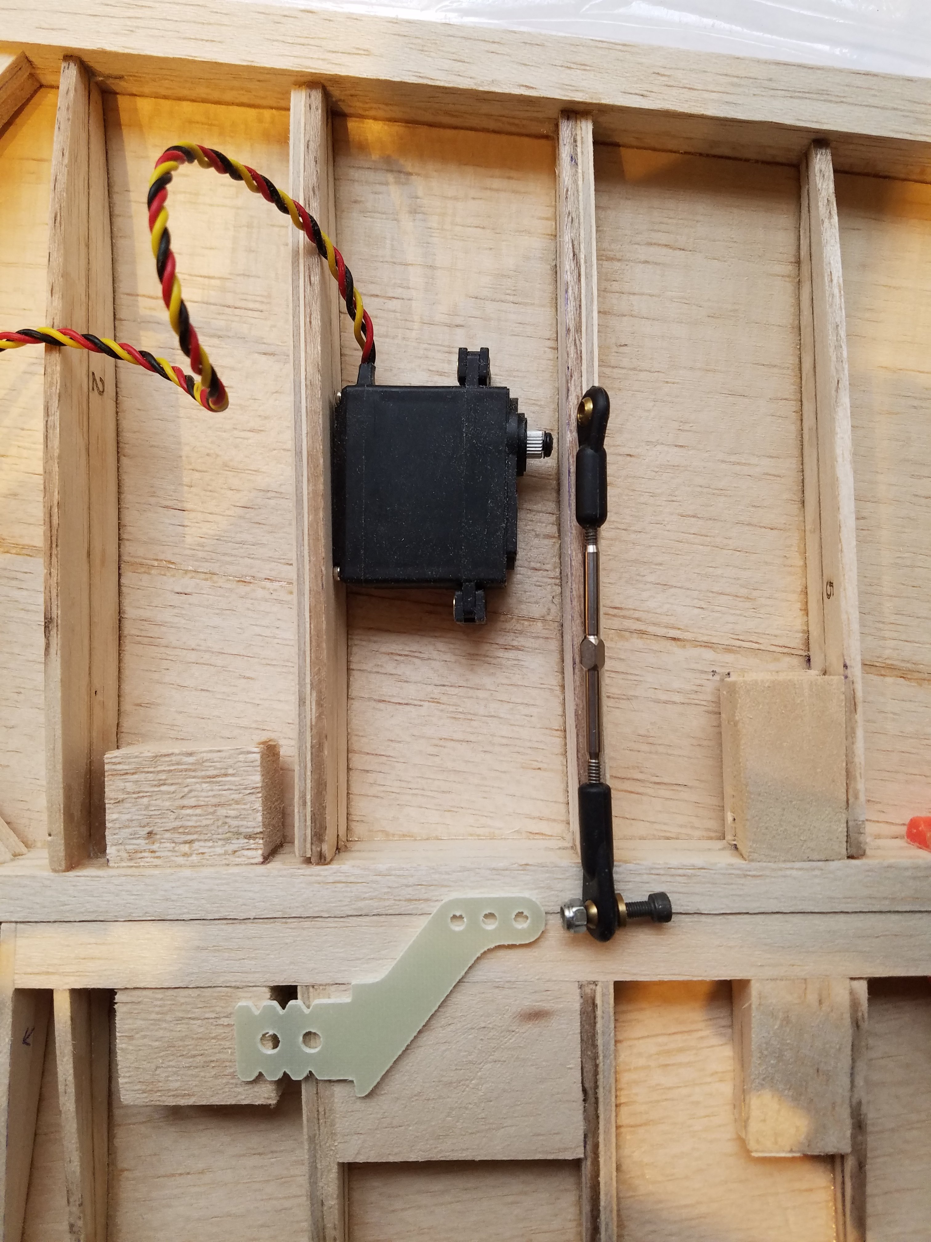 3. Last comment mounting a servo flat on its side into the stabilizer is difficult. When I have done it I have aluminum angle made a cut out on one leg and screwed the servo to the angle and screwed the angle to flat wood block glued to the sheeting and the ribs. I never been able to have little wood post stand up strong enough to hold the servo and glue down onto a flat piece of wood.