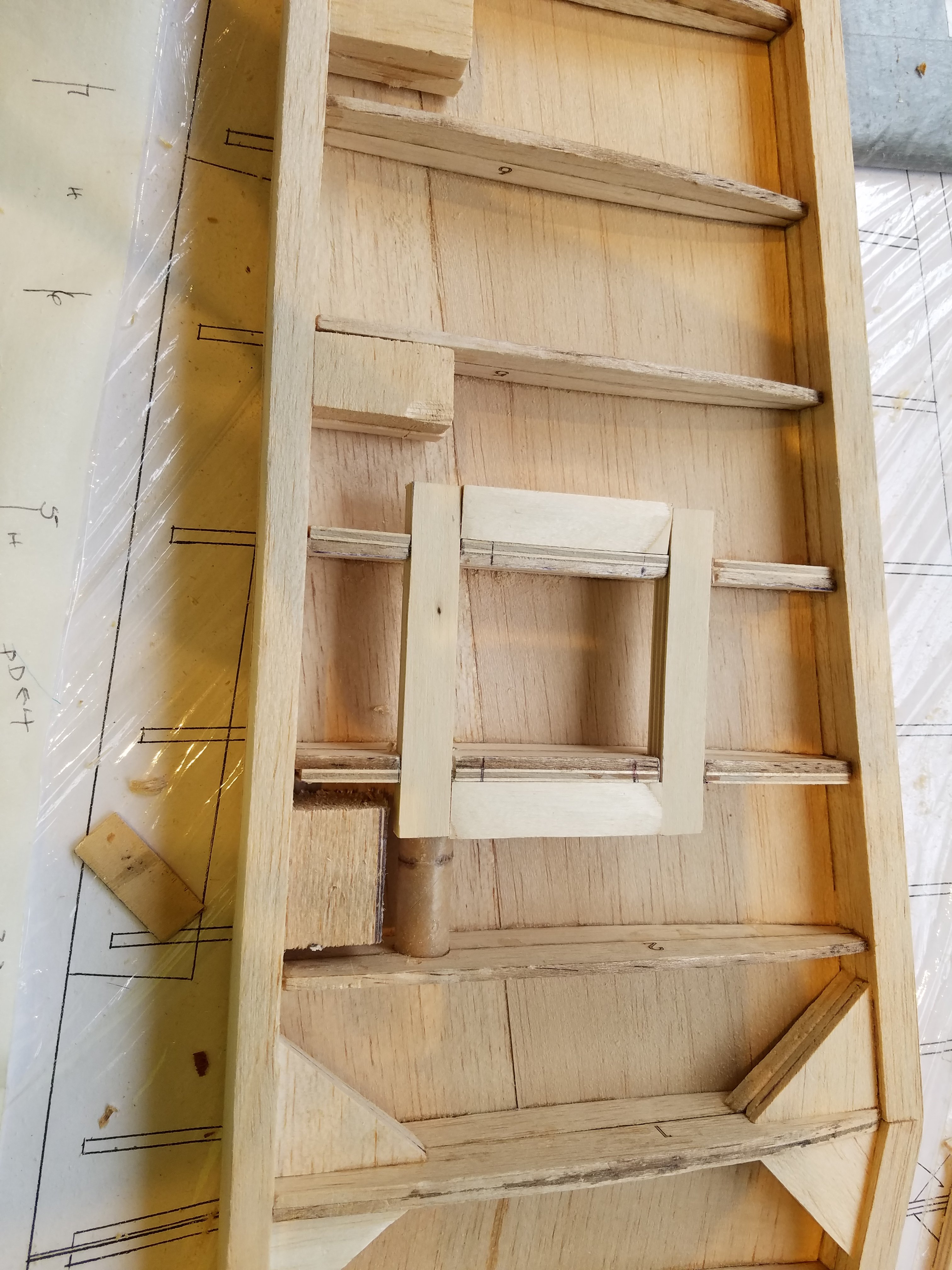 I have the two doors now laminated and under the press. This gives me some time to do the border sheeting and start sheeting the bottom of the stab/elevators.