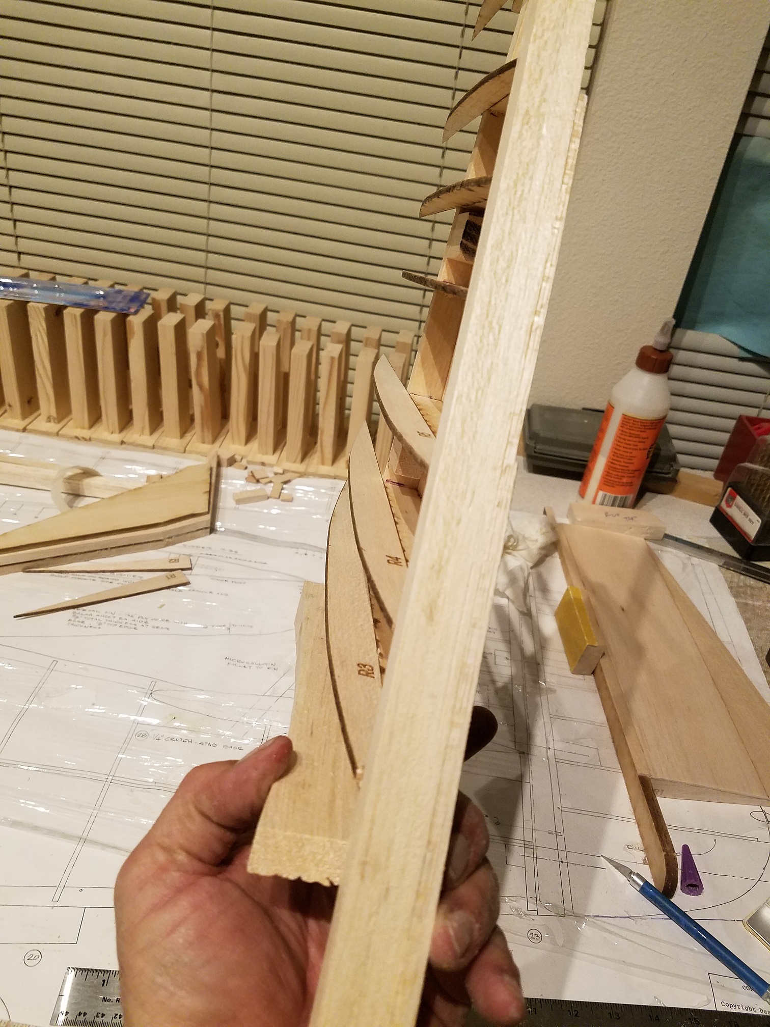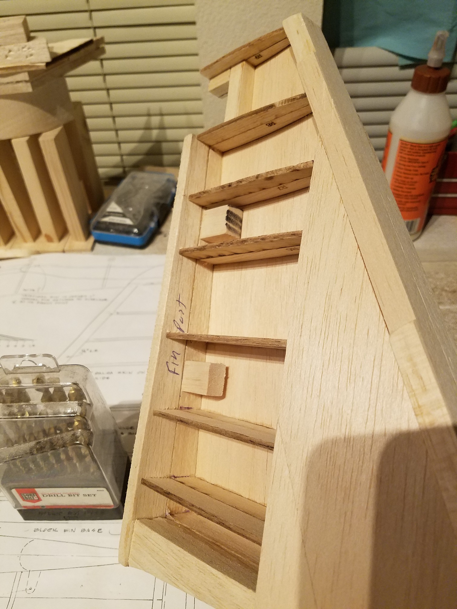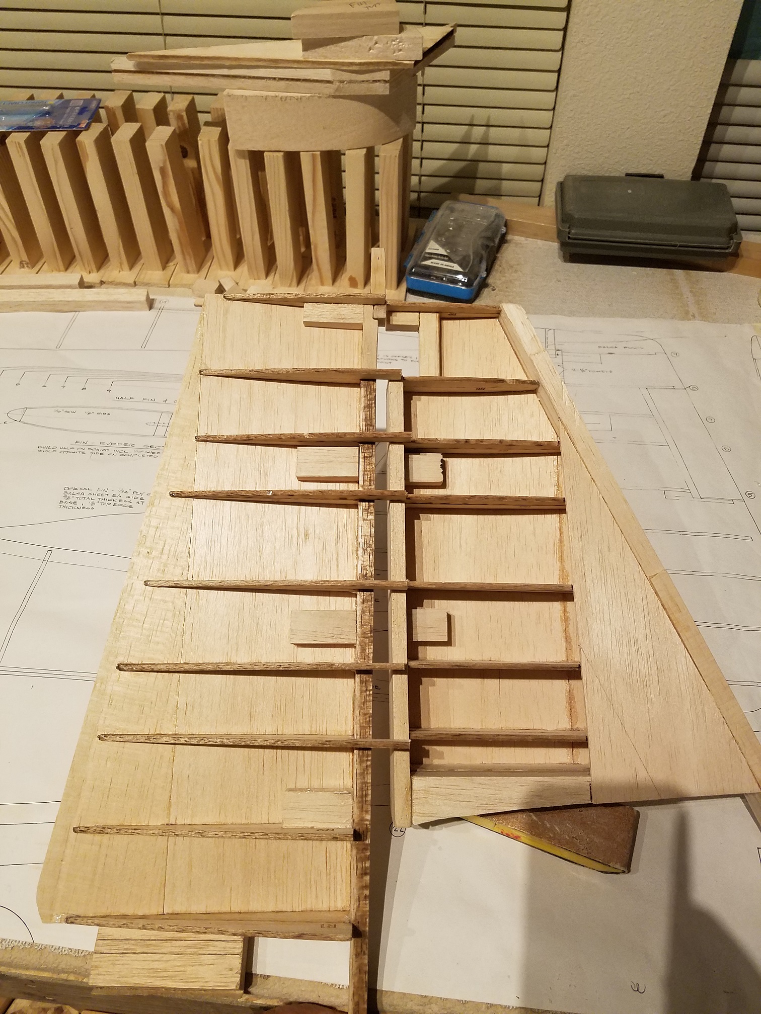 Thank you guys. I am a little disappointed in the plans on this plane. They really only suggest a very minor amount of information. I spent quite a bit of the day just trying to understand how all the pre-cut wood parts are supposed to fit together. The information is a little sketch at best. Oh sure, gluing in ribs to the leading edge is easy enough. But I am finding a bit of an issue with the leading edge and rudder post and how it is all supposed to come together. I plan to build the other half of the fin/rudder assembly and then hopefully the light will come on for the leading edge of the rudder. Then I can dig out the stabs/elevators and make the necessary attachment adjustments before both structures are finally attached to the fuse. The attachment will not be for a long time yet that is for sure. I only can imagine if the building is the quickest part, just how much fun the finish work is going to be. Ugh. I will say this though. Once the fuse was completely framed, the sanding and shaping has actually been quite enjoyable. I am one of those guys that "has" to see constant progress to keep me happy. Seeing the fuse come into its own has been a real thrill. But one other thing is certain. I highly doubt I will be to the point that I just decide to stop and say it is done. I am pretty sure the day it flies, that will be the day I am done. LOL.