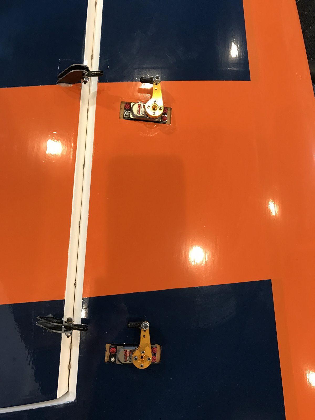I want to attempt to make the best mechanical set up 1st, so that both servos are perpendicular to the servo arms, and form right angle, and then the control horn hole is same distant to hinge line on both, the inboard and the outboard horn.