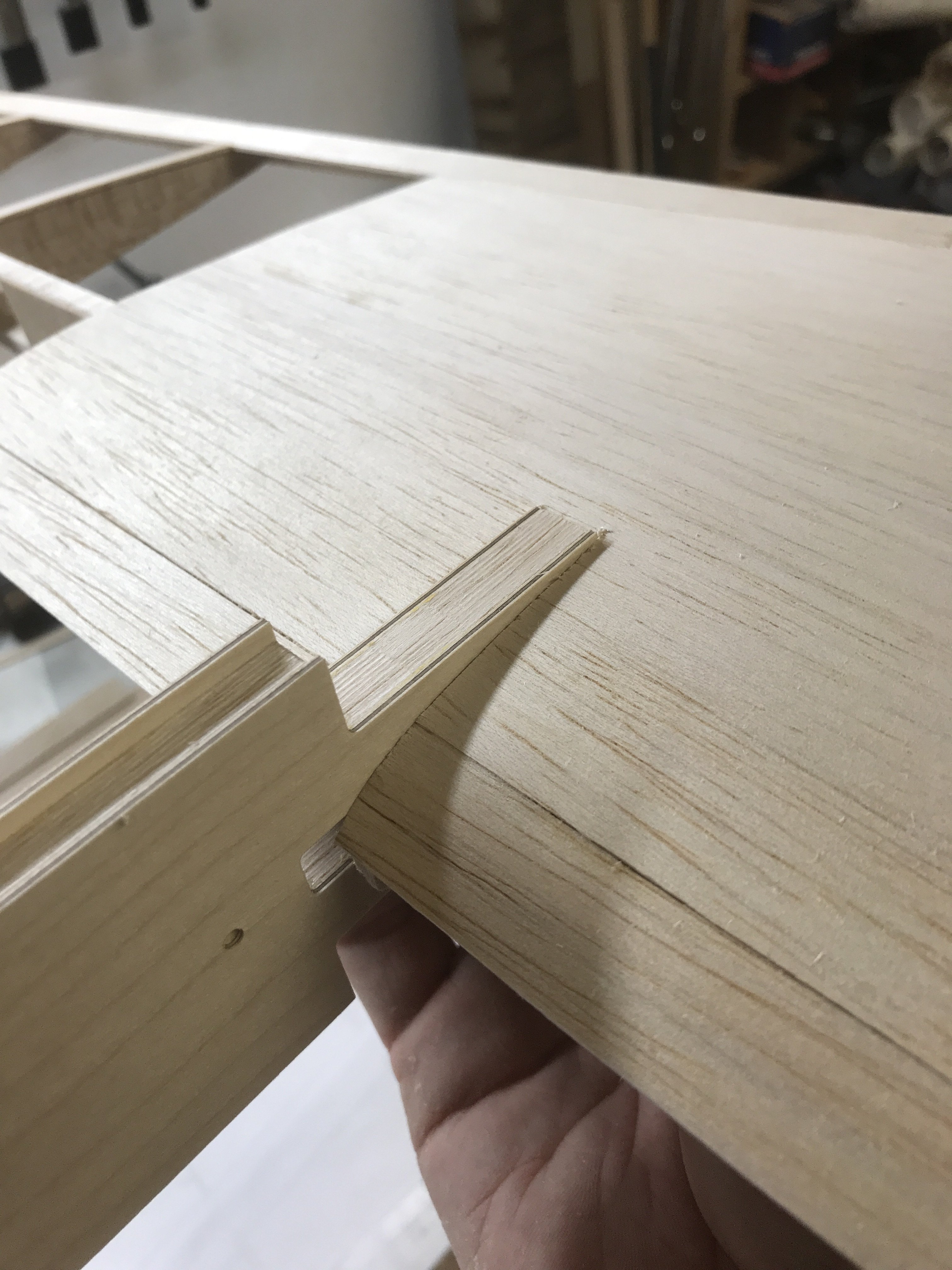 Fair bit of progress this morning. Got the le sheeting on, Center section, and one piece of TE sheeting. Same as the top basically but you can see how I let the Center section hang off the back and the TE just butts up to it. A lot quicker and easier this way. Should have the airframe finished tomorrow and ready to start prepping for covering.