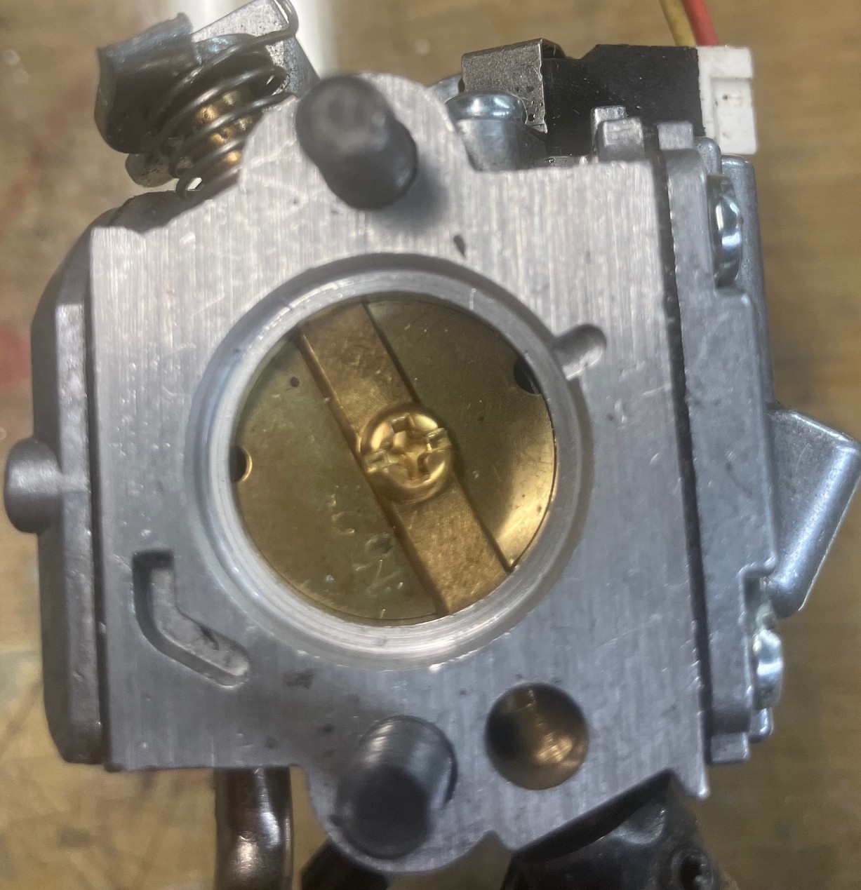When I compare the slot in the WT 962 carb it is much smaller than either of the slots on the ZAMA. I would estimate the slot area to be about 6X that of the WT962. I would like to have the idle set before completely the final tuning. Going over the gaskets and heat isolators, might find an air leak.