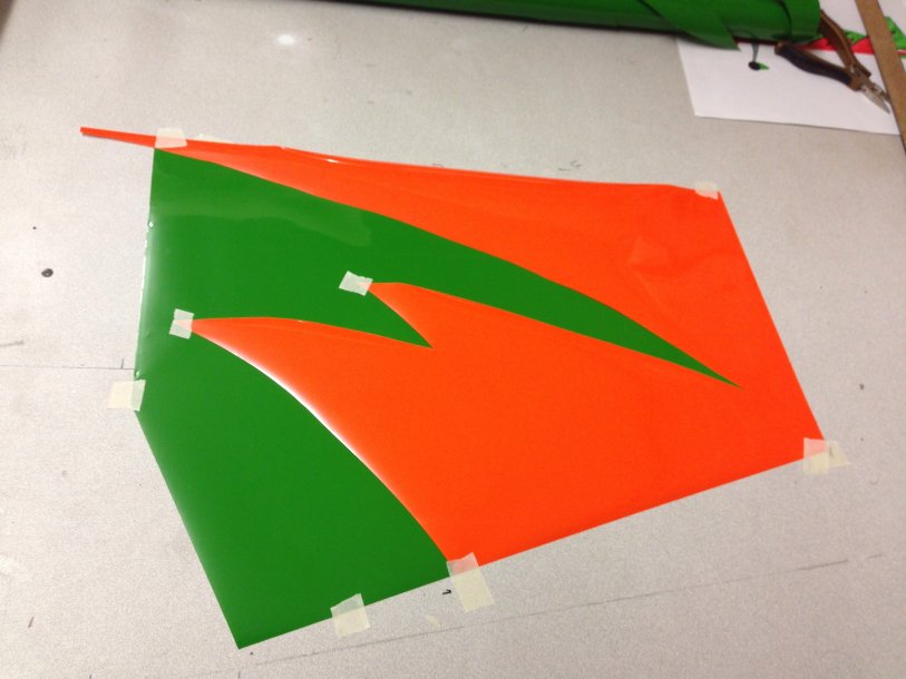 One stab is covered. Forgot how much more work was involved covering a fattie over a profile. Happy with the results so far though. Me thinks @orthobird would like the colors in throwing at this plane.