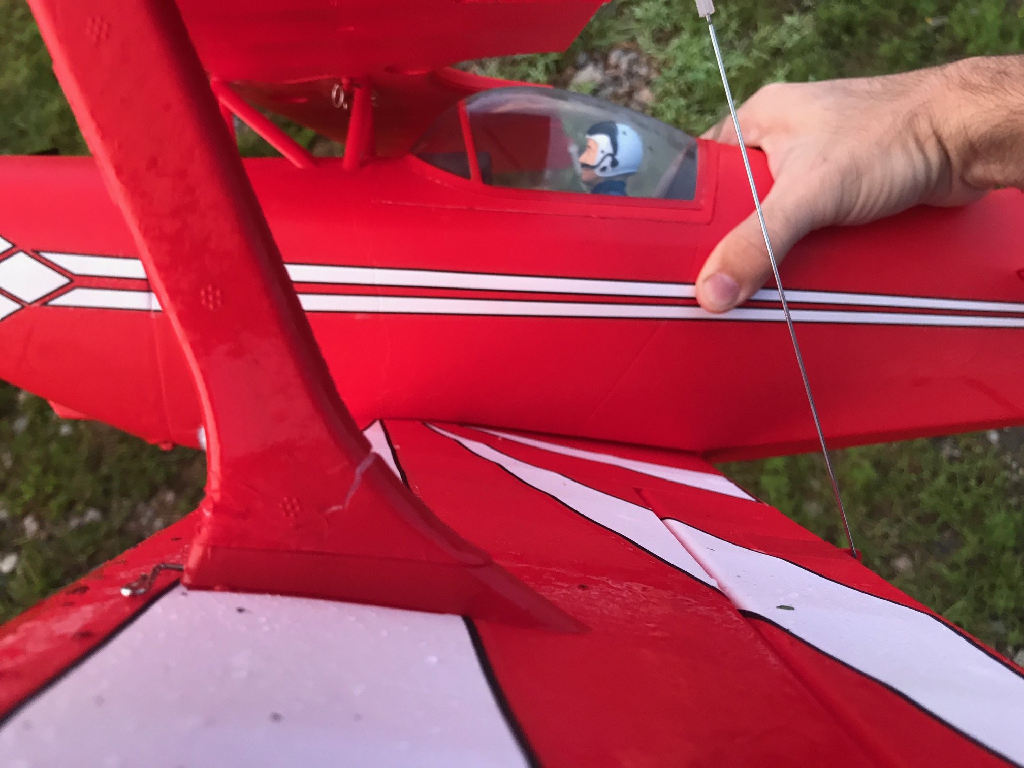 Now to the rough part. Bringing it in to land did a couple approaches to feel out the plane and it does need a little speed. Make a nice smooth touchdown but did not see the bigger rock in my path. Rock caught the right gear and basically caused the plane to do a high speed ground loop that when the gear leg bent and folded up the plane then cartwheeled causing the other damage.