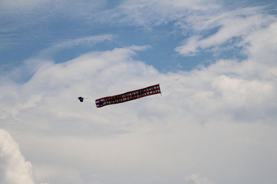 Here is @Bartman towing a banner thanking Mr. Pat for the awesomeness that is Joe Nall.