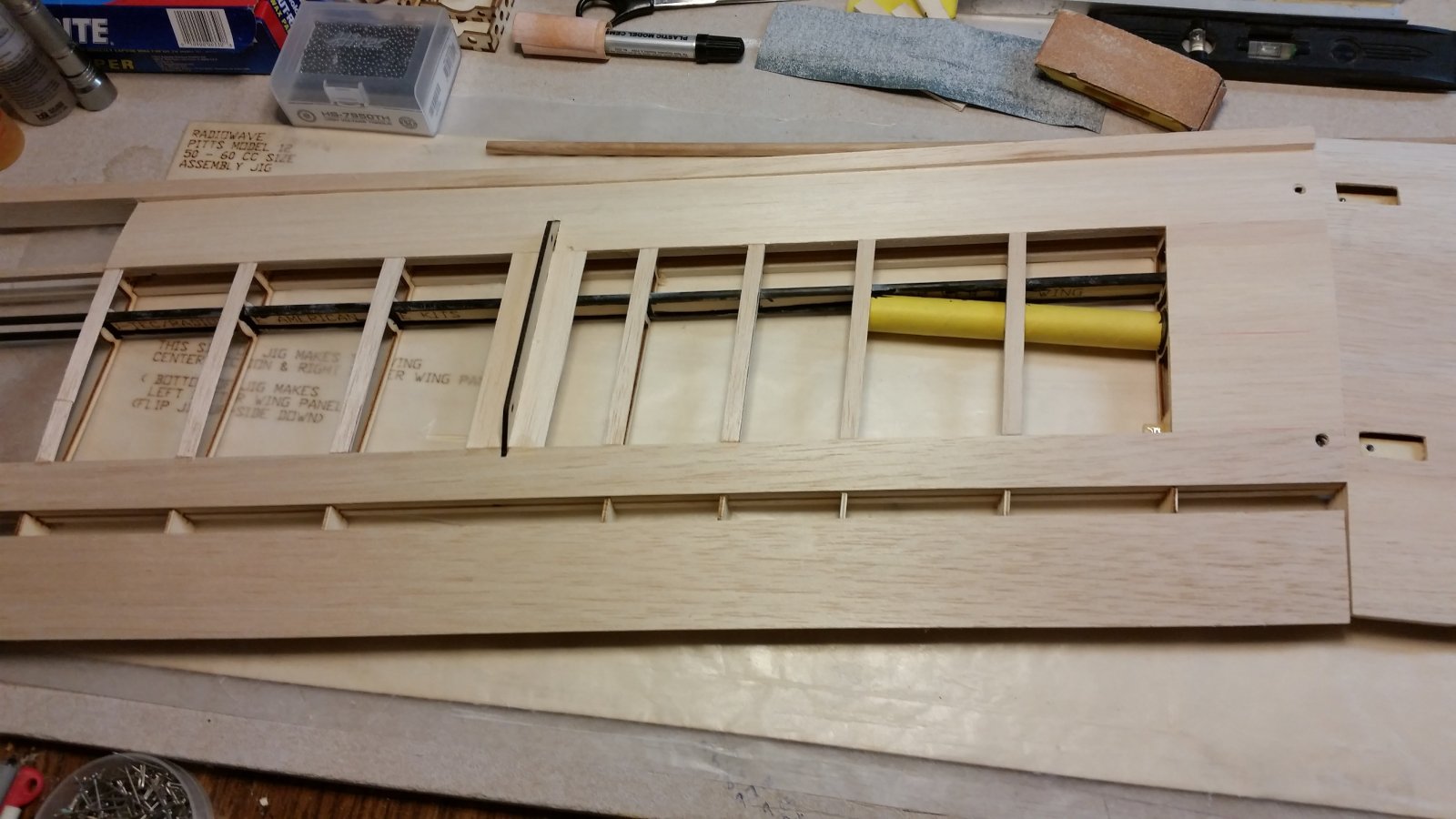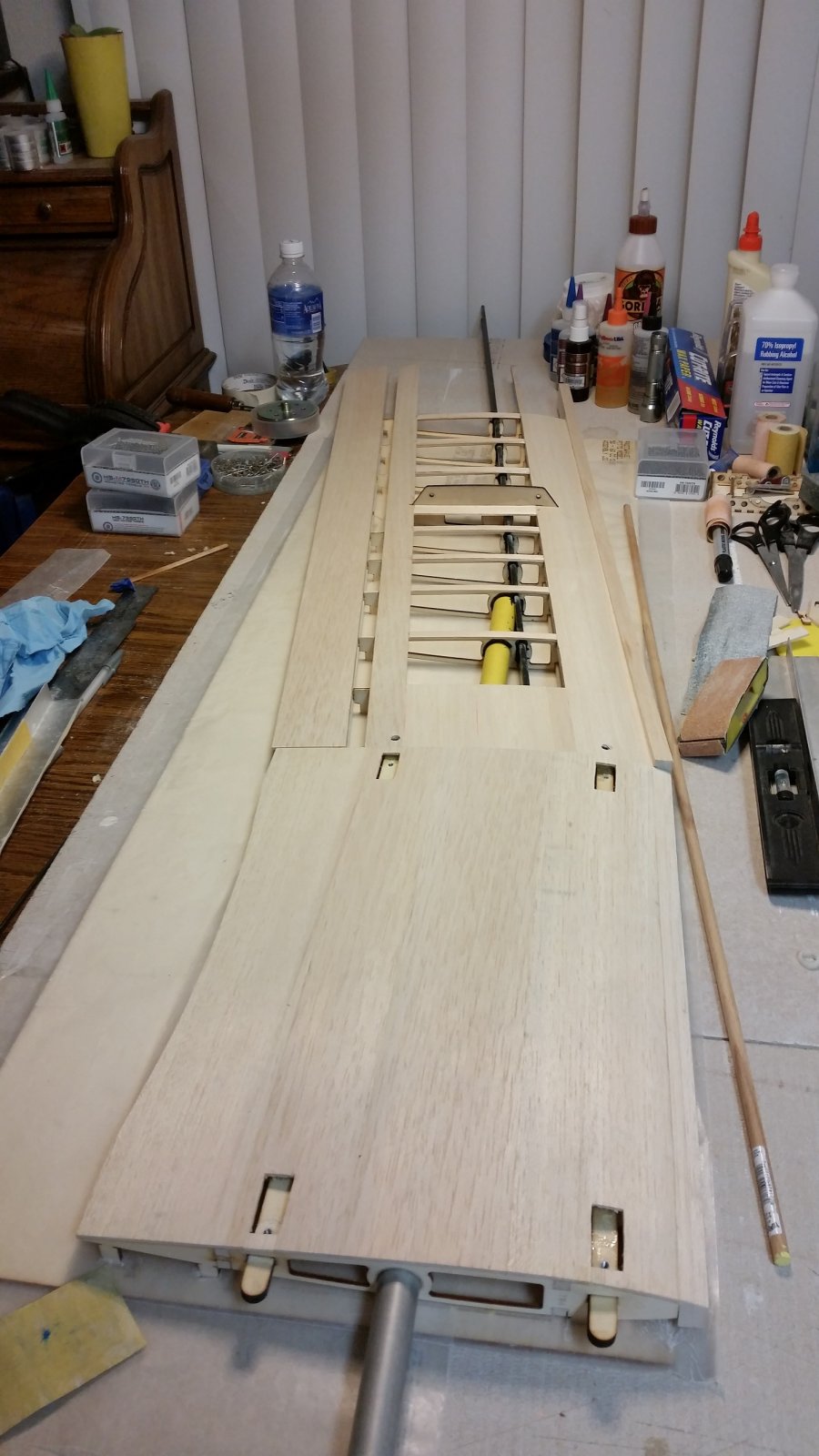 Tanner however is 100% correct. Hitec protocol will not allow more than one operational rx. for radio set up. Not with the Optima 7 and 9 rx's that is. I have been considering my options on the top wing servo's as I have moved through this build. About the only option I have short of changing radio systems, (and that ain't gonna happen) is to route aileron servo leads from the rx. in the fuse up to the top wing. But I do have some ideas. I was thinking of running the servo leads up from the lower wing "inside" a passage way built into the interplane struts. Since they will get a laminated layer of balsa on both sides, it would be easy enough to run an access passage up to the top wing. Totally concelled. It would mean I will need to plug in (4) aileron servo leads everytime I put the lower wing on. But, it would solve having to run the leads up through or near the hatch and having them run past the cabane struts. Either way, I'll have to use longer extensions to make the distance to the top wing aileron servos. Just a first thought, but I'm open to suggestions.