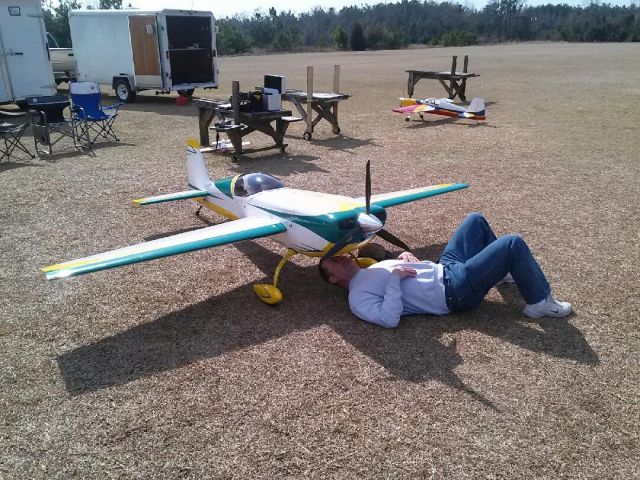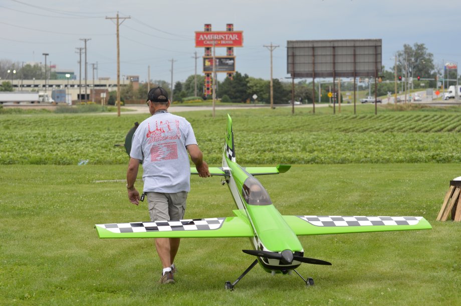 So here's my first installment for Friday. The weather is perfect! Sunny, 85 degrees, light wind, a huge crowd, music from djmoose, Bivens is here, Team 3DHS is here in force. The air is full of planes, the soybean field has claimed a few victims, and we've got guys assembling planes on site. :D