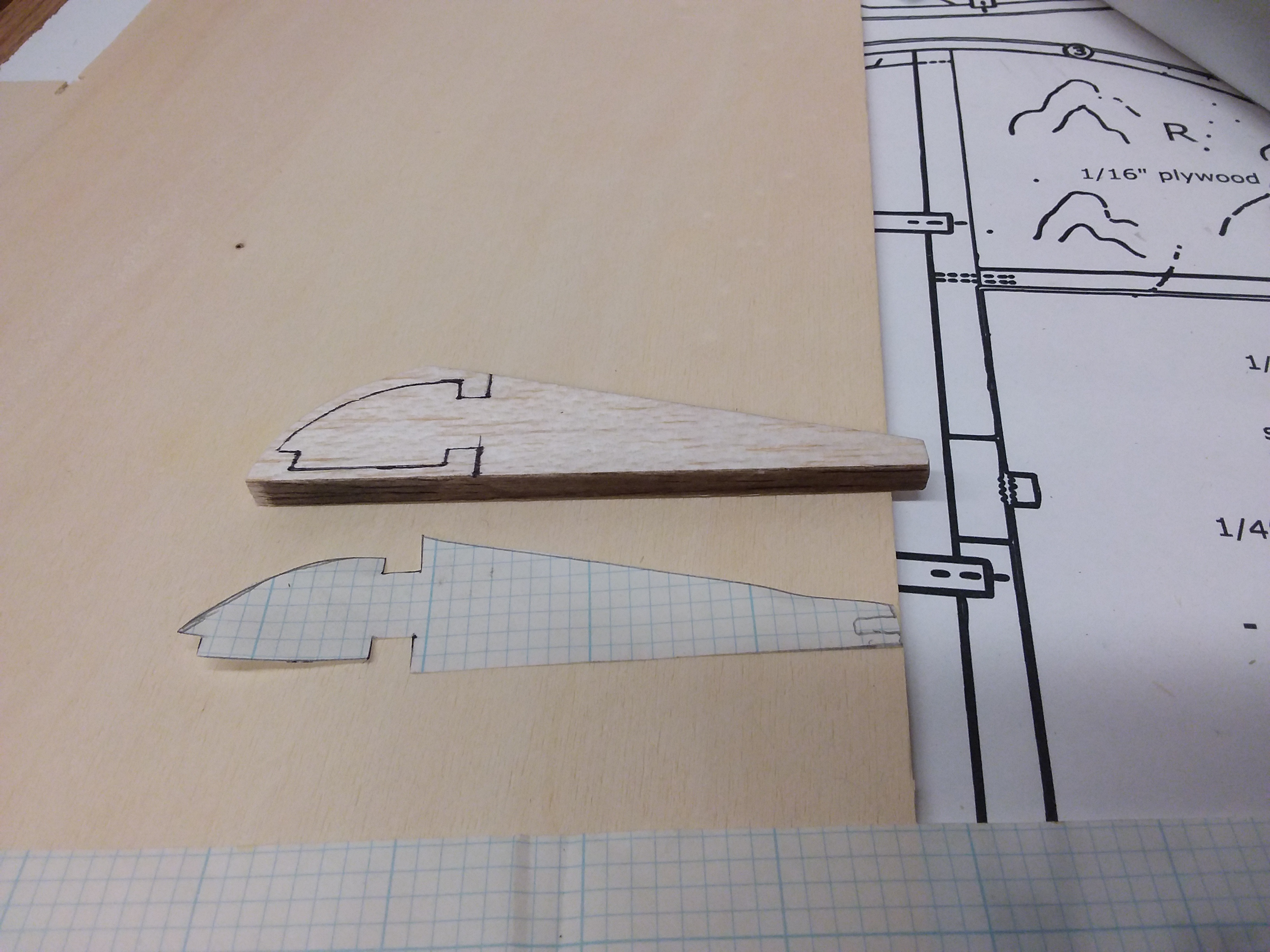 Waiting on some missing pieces I decided to find another area to start. Traced out the aileron ribs and transferred it to the wood.