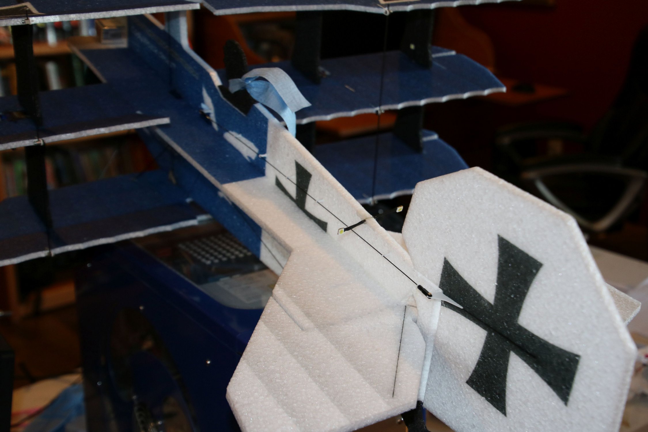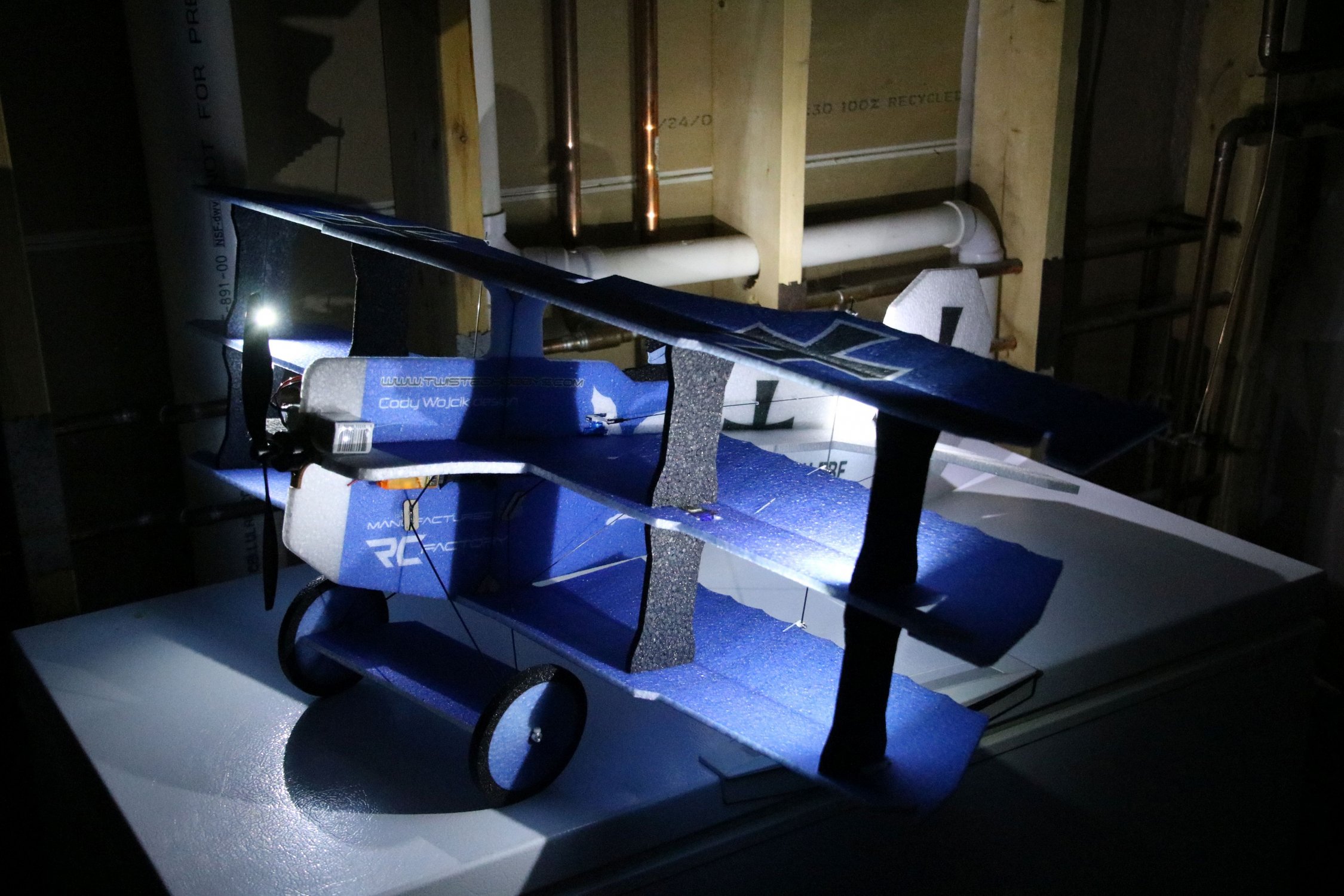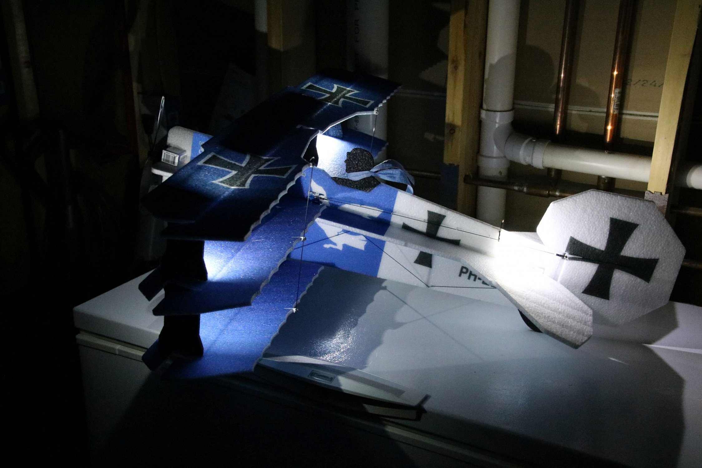 I received my light set today. Thanks Mike. I was trying to decide if I wanted to use them as is and put them on the middle wing, or break up the wing ones and put one on top and one on the bottom wing. I tested out the setup as is and decided it looked good. Installation is a breeze and these should provide plenty of light for night flying. The set comes with a Y harness, so I used one of the ends and soldered it inline with my battery connector. That way I can unplug the lights if I want. The utility room was the only place I could find that is completely dark, so that is where I took the pics.View attachment 85840 View attachment 85841 View attachment 85842 View attachment 85843 View attachment 85844 View attachment 85845 View attachment 85846 View attachment 85847