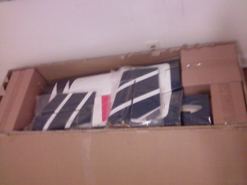 The only damage I can tell.......so far.......(rest looks ok!)........is some wood delaminated from the glass resin former of the right stab. Control surfaces come hinged and glued! (except rudder) and are huge! Came with this cool gas tank too!:big-grin: