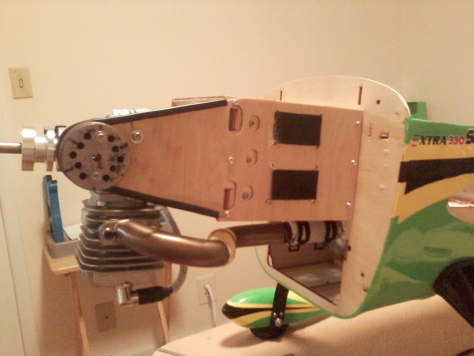 .See???Got the 8oz weight (old 3W drill guide from my 3W days) moved as far forward as I could get it. Need to make some balance tab extensions and strap the batteries back on. Then it's flight test No.2