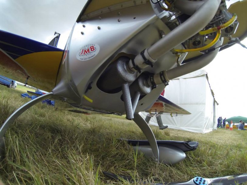 Then I mounted cowl and measured from firewall to end of cowl to figure out what length stand off I need. You need to use standoffs and not mount the motor flush since the mufflers would hit the firewall. I found I needed a little more then 1/2". So I used a hole saw drill bit and made some plywood standoffs combined with washers on both sides......