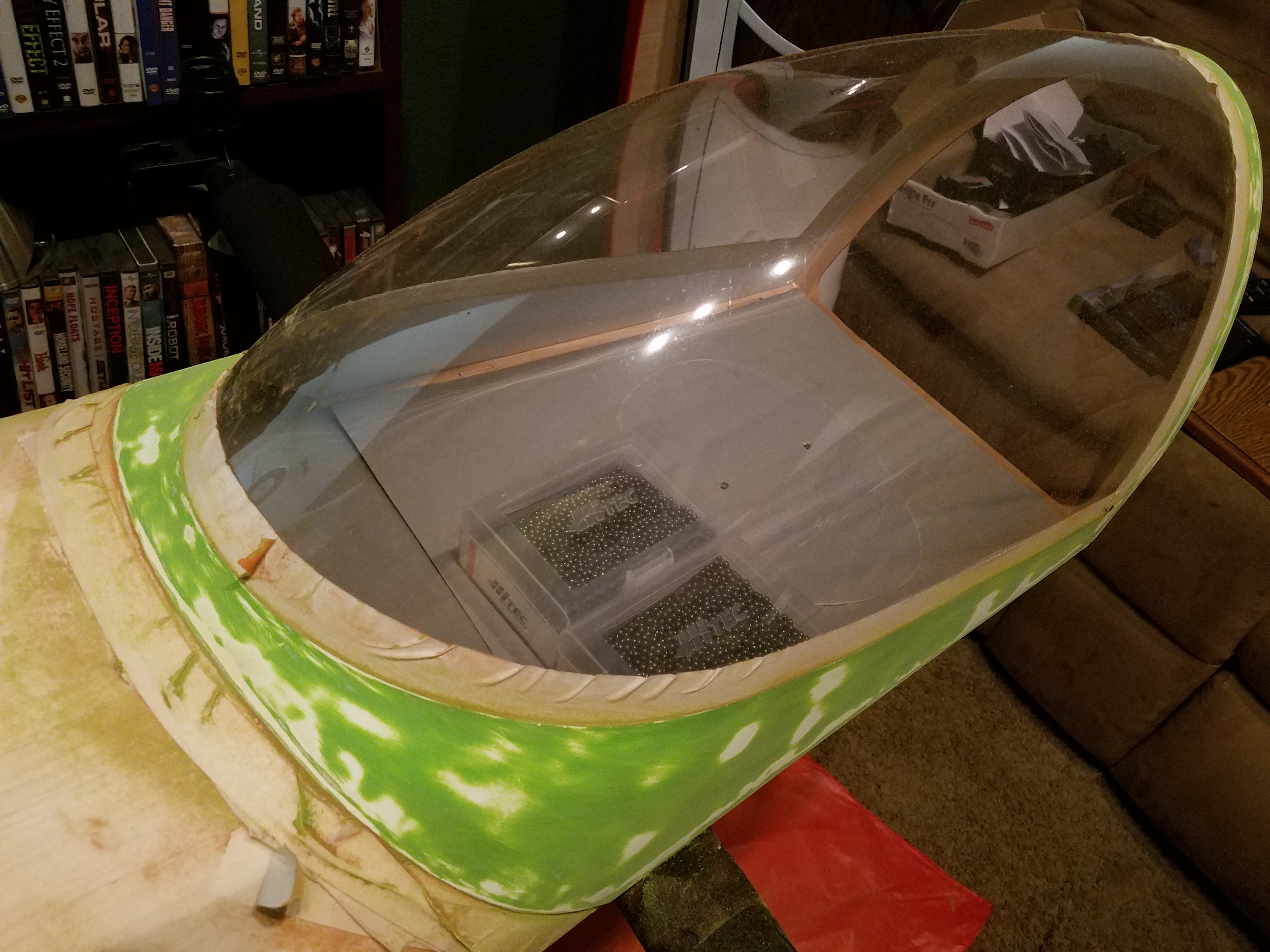 So would it be safe to assume that @Xpress hit the nail on the head? No red, so repainted a green? This is actually very helpful. Now I know how to proceed with said canopy. I am going to shoot it with primer. (Once final sanding is done) if the primer stays down with no issues, I will then paint it and be done with it. Lol
