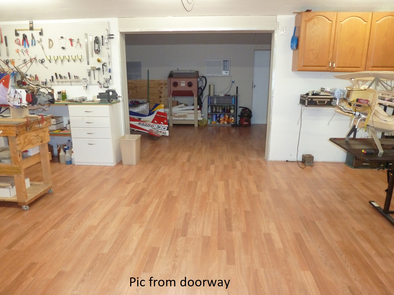 That is beautiful shop and you can really move around without tripping over something and have enough space to several working stations while glue is drying. Have one question the floors look immaculate, now what happens when you spill glue, CA, and what ever else on the floor, or like I did the other day spilled a small can of paint on the floor while I was touching up an aeroplane. That floor looks perfect.