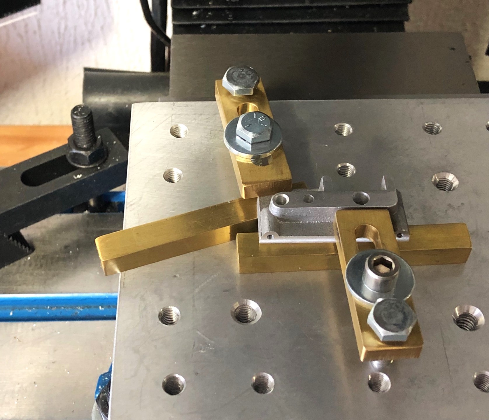 I used metal bonder to hold the lead screw blocks in place for now, just so I could line everything up and get it working smoothly. Now I've got to take it all apart and drill the leadscrew blocks.