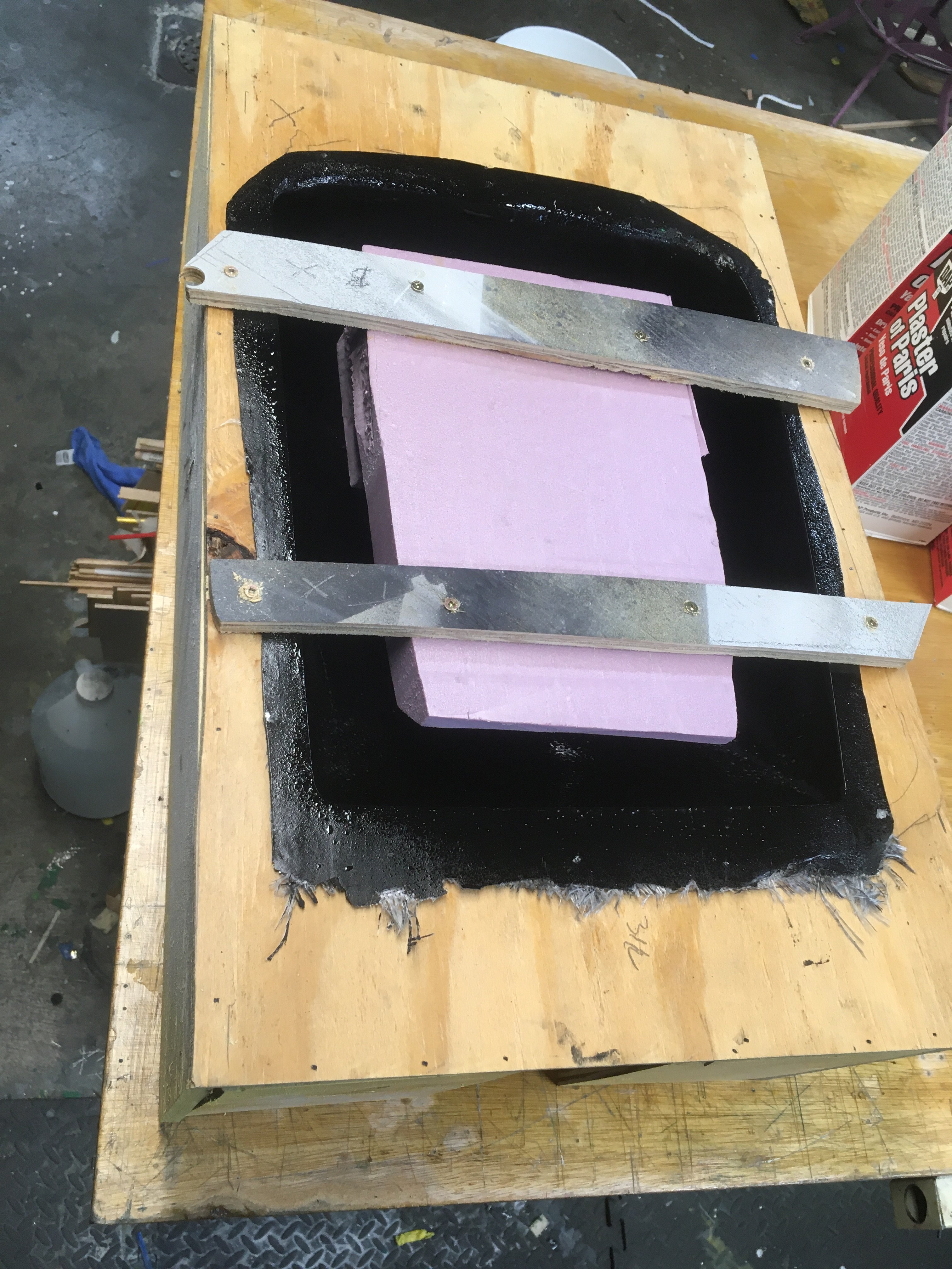 Back to work on the Champ, enough of this playing around with engines. I built a box out of scrap 3/8" plywood to support the form for the windshield plug. I treated the mold with Pam cooking spray for release then filled with Plaster of Paris, man does that stuff setup quick! From what I read on the web they suggested filling the mold 1/4 at a time so that's what I attempted, messy stuff for sure, I made a foam filler to minimize the amount of plaster needed, this was just short of a 25# sack.