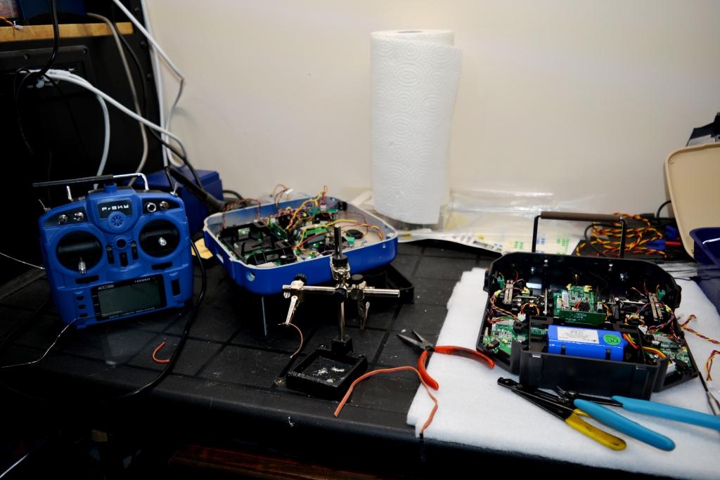 Here is one of the reason the Laser is not going as fast as I would like , I designed a new more ergonomic FrSky X10S casing, 3D printed and now in final stage of assembling all electronics, Had the power on , and happy to report there was no white smoke LOL but still more soldering for longer needed wires but its all good