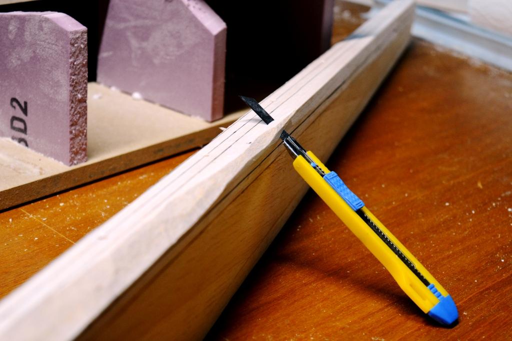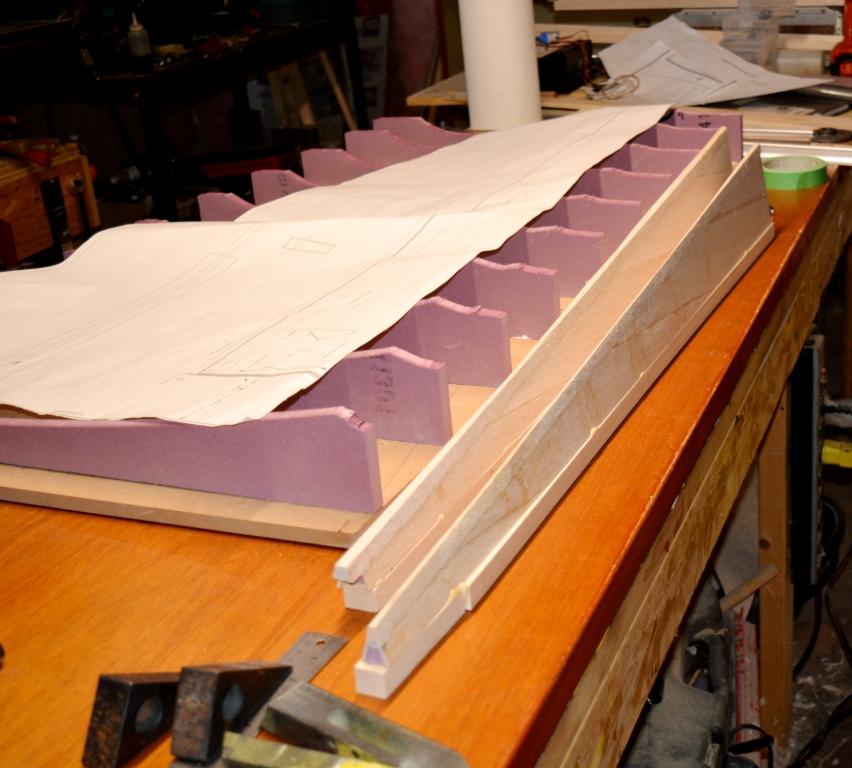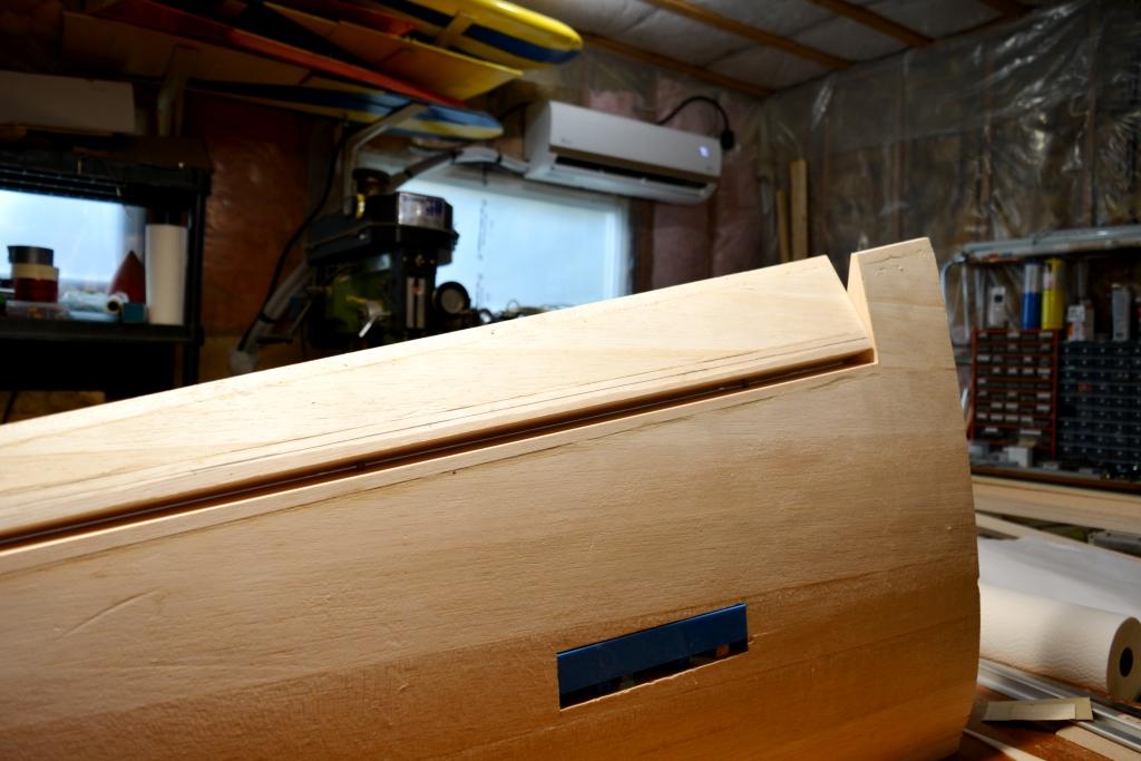 rudder assembled more work to be done, you can see my faithful inexpensive table saw I use, and you can see what I did for precision, the first thing a large piece of plexiglass to have a smooth surface , then I'm using an old aluminum level as a fence , it works