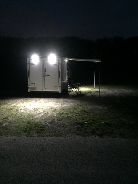 I'm digging the awning!!! Think that will be a later edition to mine as well lol.Got a chance to go flying today and test mine out with everything done-(I think). Here's a few pics of the awning. I'm glad I got it. Pretty much the same square footage of the trailer for exterior use. Also glad I installed the exterior lights.
