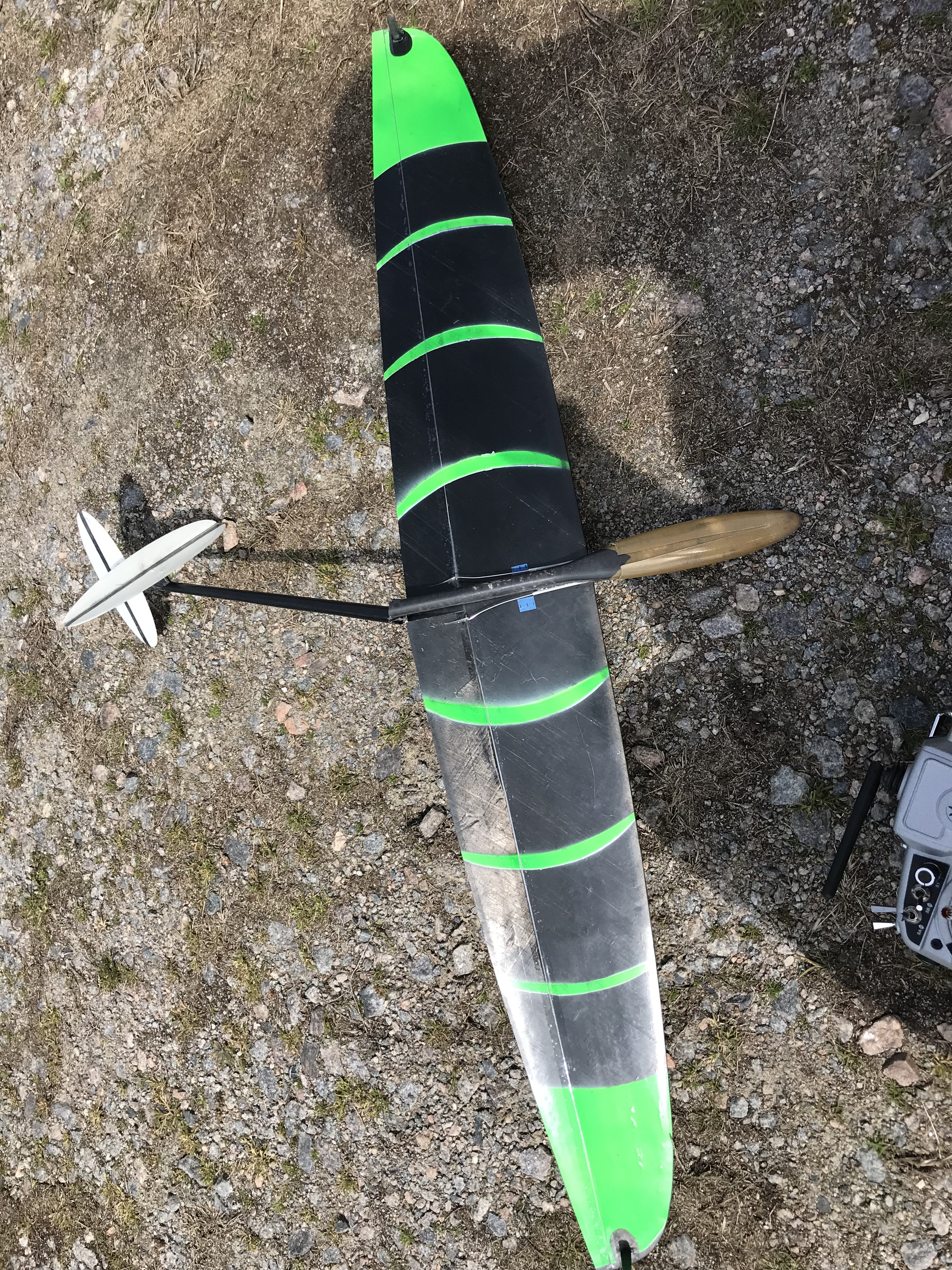 Out flying my 1M dlg in the yard. Had an aileron servo lock up at full deflection and it death spiraled to the gravel driveway. Think I will be able to repair it so stay tuned.