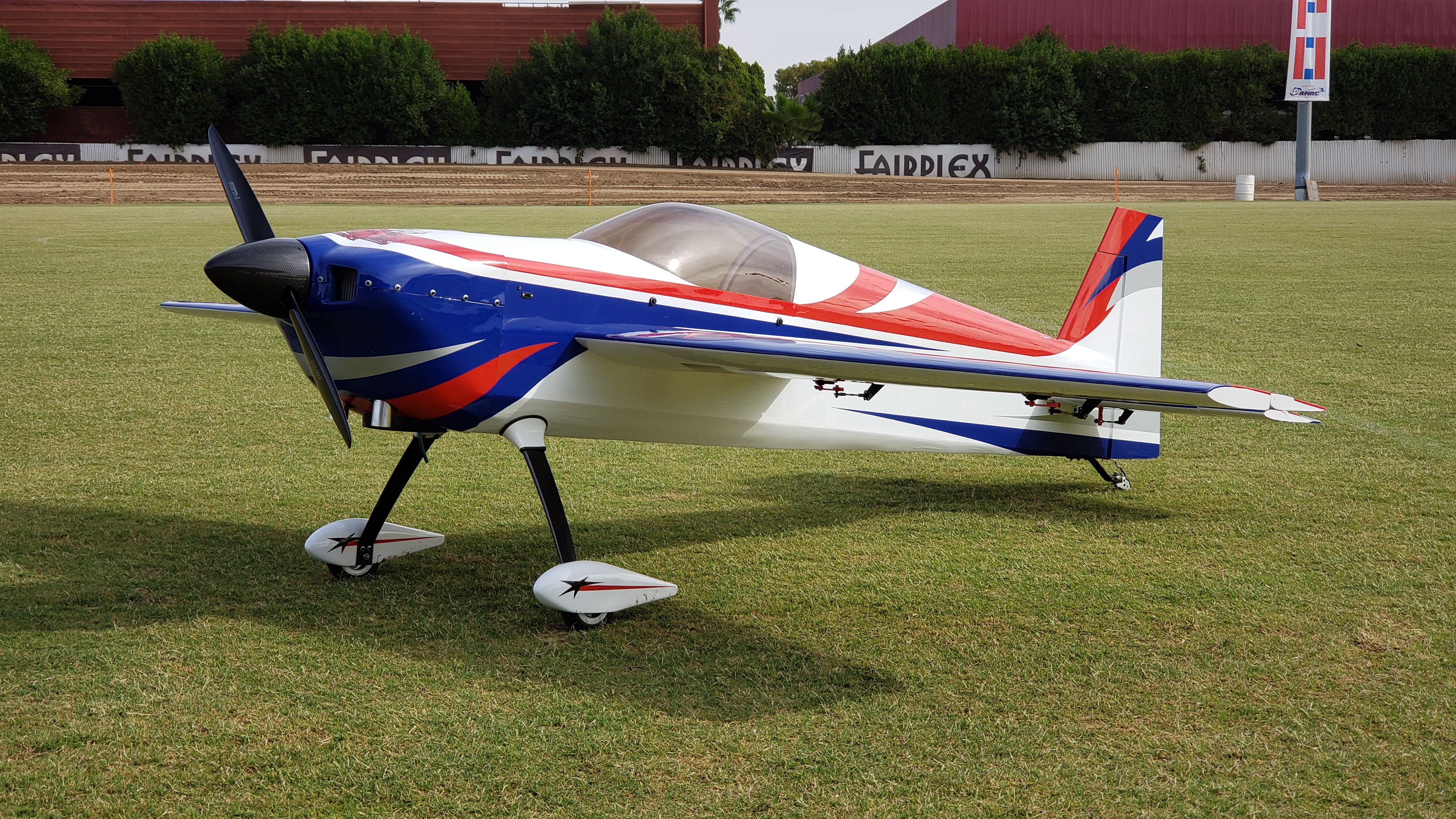 Down thrust is right on the money. Control throws are the same as when it had the Saito 180 on it. Flew and landed great. What has changed is the DLE 35 and the freaking Gail force winds. The Saito as you know is a beast motor. The 35 is pretty light. The Saito is just shy of 3 pounds, the 35 is 2.02 pounds. Huge difference. Plus I dont have the heavy four blade prop and tank killer spinner up front. So the reduced 1 plus pounds off the nose made a huge difference combined with the wind. No worries. She flew and really well. And looks bad ass in the air. Minor weight correction and she will be golden.Some nice flying love the beautiful open area and blue skies. That little Mustang had you sweating there or a while but it all turned out great looks good in the air. Agree with all you guys tail heavy and need some down thrust in the motor. Also I belive you have a lot more than about 20 degrees of up elevator in the the plane , just my observations from looking at the video.