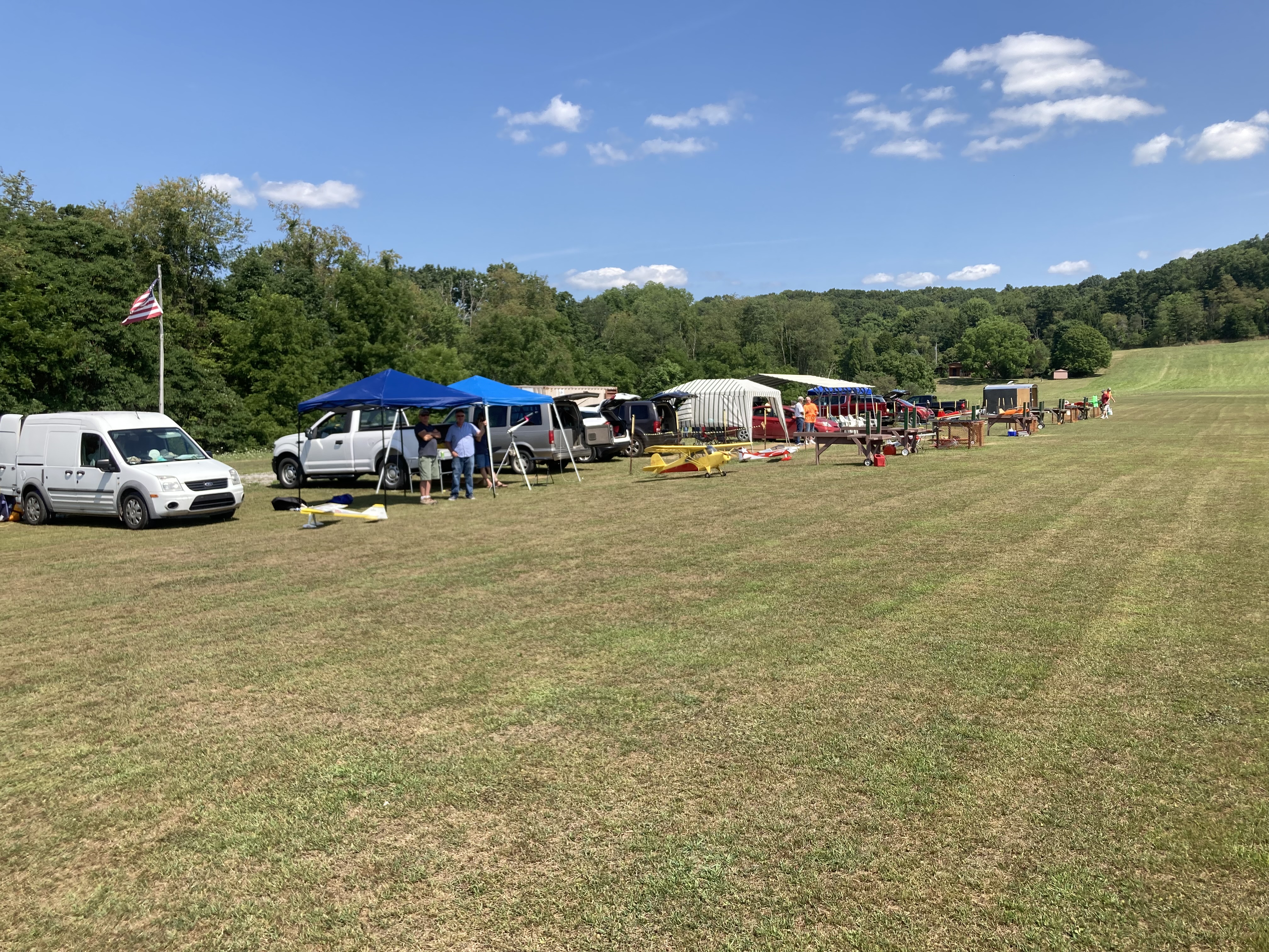 Got up and out early, at the field at 9am trying to beat the heat. I generally don’t fly in July/August. Today was perfect; overcast and cooled off from rain yesterday. I hated to leave but already had a full day planned. 4-10+ minute flights makes for a great morning.