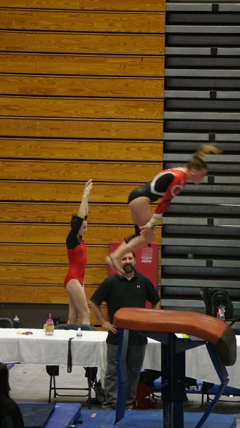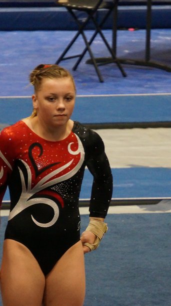 Three of her warm ups at her state gymnastics meet.