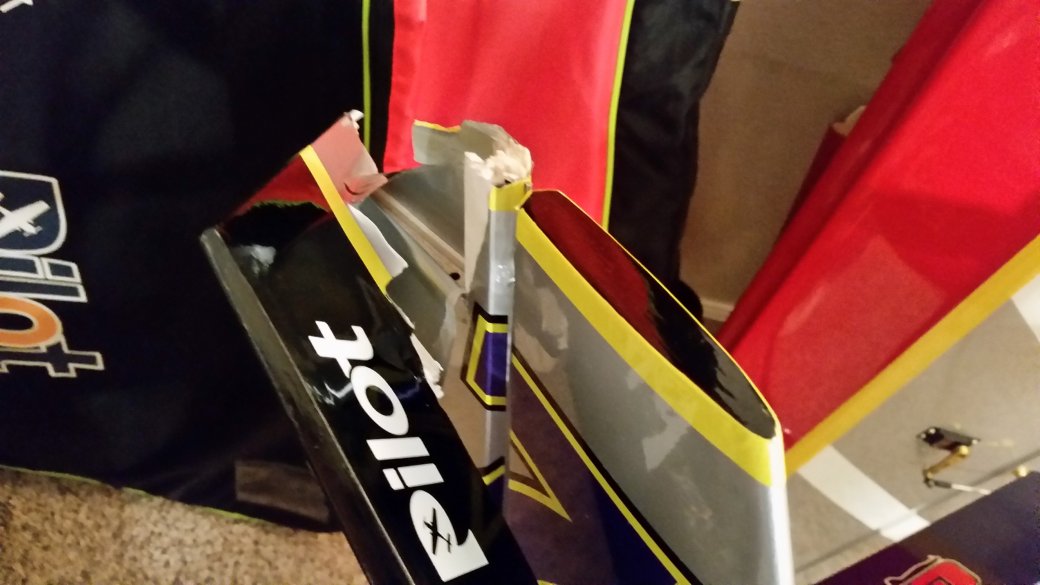 With free wood replacement from Pilot makes it a bit easier.Got some stick time again today. Much like the rest of you, wind was up....wind was down. Wind was up....wind was down. I put three flights on the Sukhoi and three flights on the lil Edge. Unfortunately my rudder touching harriers were too much fun and mother earth and father wind put a KYBOSH on them for a few days. DOAH!!!! This is what happens when you touch the rudder in a hover, then the wind slams in into a cartwheel.... Ooopsie......