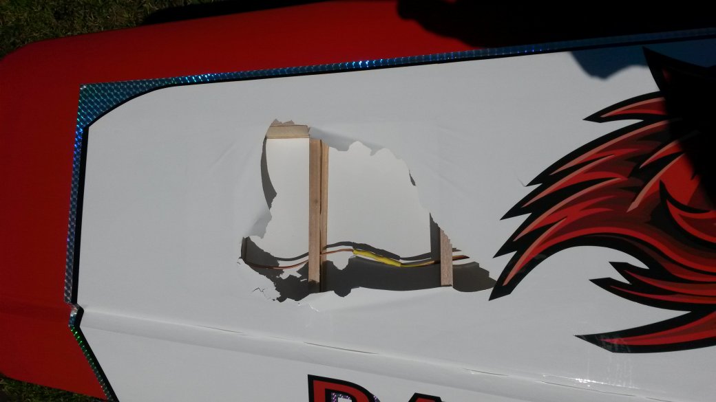 First flight, geez, do I even know how to fly? Landed to refuel and found a problem with no explanation and no recourse but to pack it in. I stripped the top of the wing last night but I still don't know WTF happened. There is no wood damage, the bottom covering is untouched, and the wing is solid and stiff. Makes me nervous.