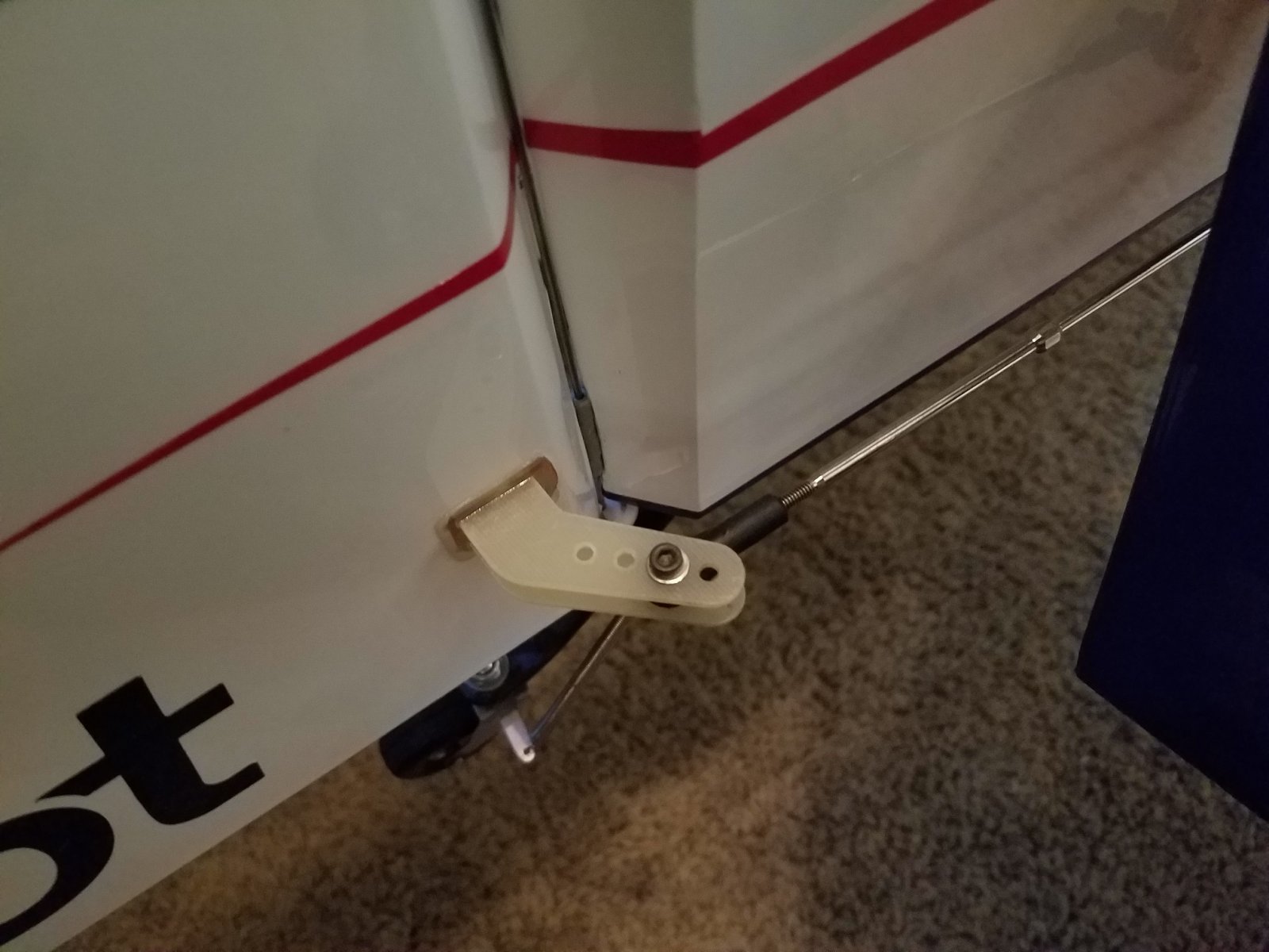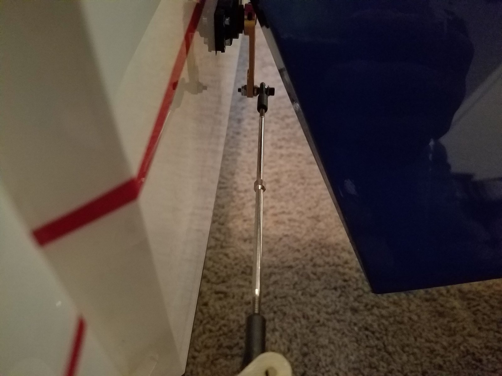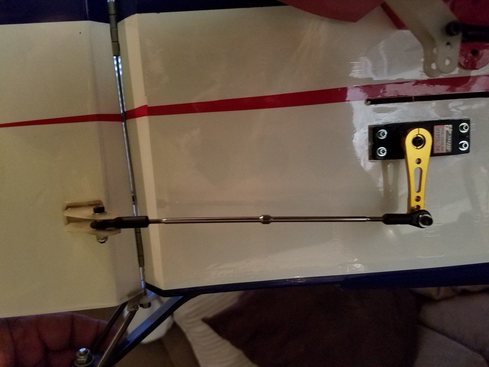 I added the lower horn to try and correct the terrible geometry as best as I could but it looks like the entire setup was doomed from the start. From what I gather, it looks like your elevator is set in the fuselage a lot higher than mine is which is why you have no issues with installing a rudder servo in the tail.