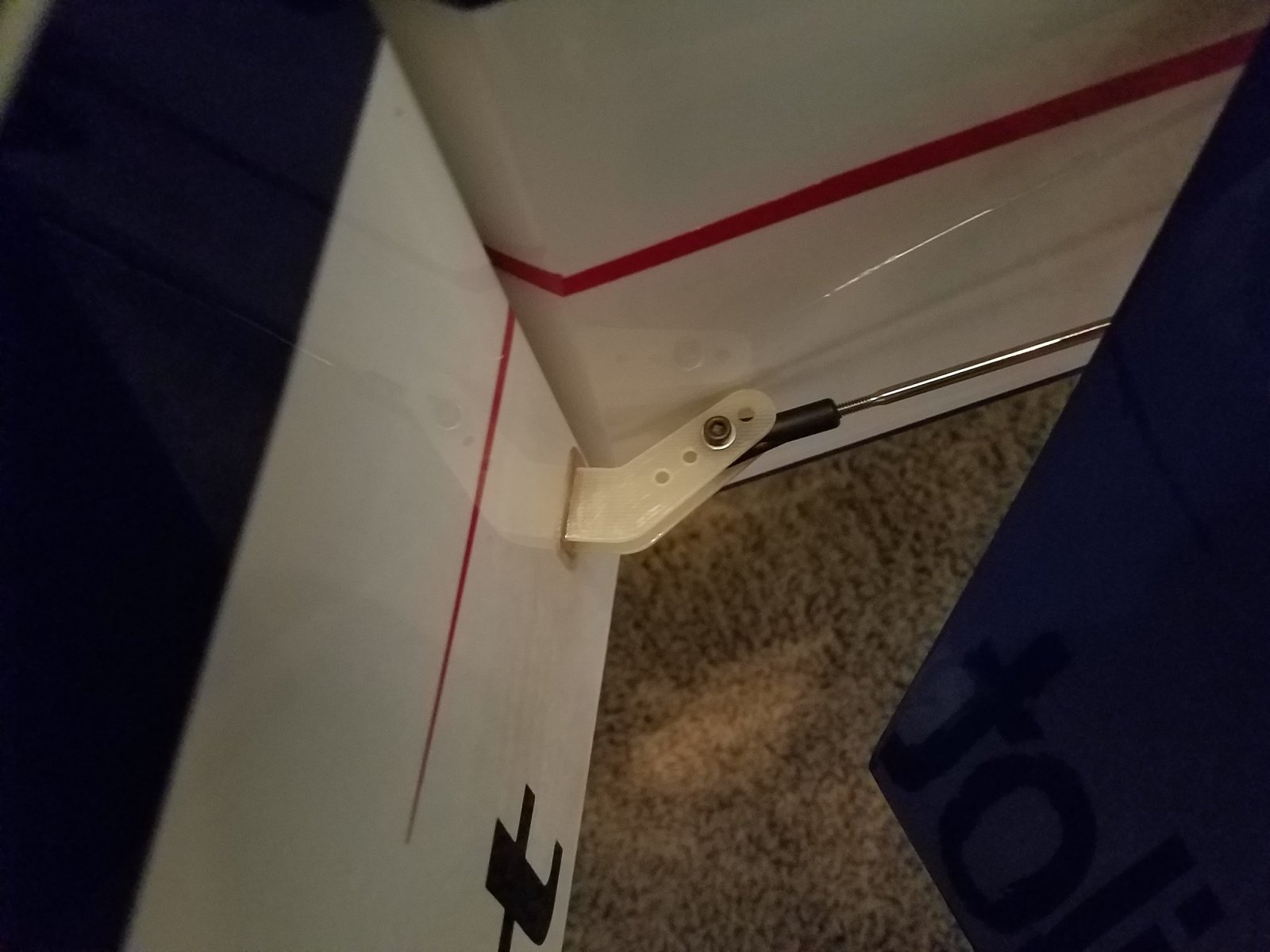 Here you go Tanner. I am not entirely certain of what it is that is different or just what you can tell from the photos of my Edge rudder. But as you can see, I get plenty...way lots of plenty of rudder throw. In fact, I have my rudder throw "e.p.a'd" out to stop it from going full stop either direction. And the rudder will travel exactly the same amount whether left or right. Full down elevator does not interfere with the rudder travel. I have found that the 107" V2 Pilot Edge does not "need" all the rudder throw you can get out of it. In fact, too much rudder actually counteracts any superior maneuvering capabilities. For example: Both my 107"'ers only needs about 30 degrees max throw to get wicked fast and tight knife edge spins. "Pop-Tops" are just as insane. When doing full throttle knife edge snaps, max throw of the rudder will give you some extremely violent snaps. From perfect Left wing up snapped to perfect Right wing up and vice versa.