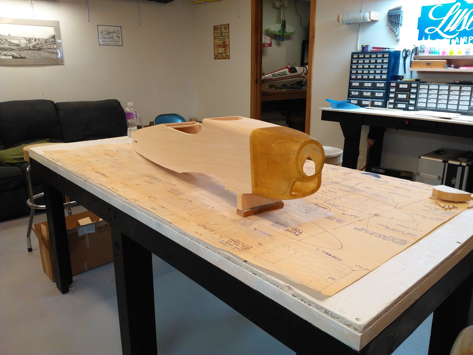 The bottom of the fuse was lowered 1/4" to fit grampa's cowling. I will also be replacing the 1/2" thick ply landing gear plate with a 3/16" ply laminated plate.