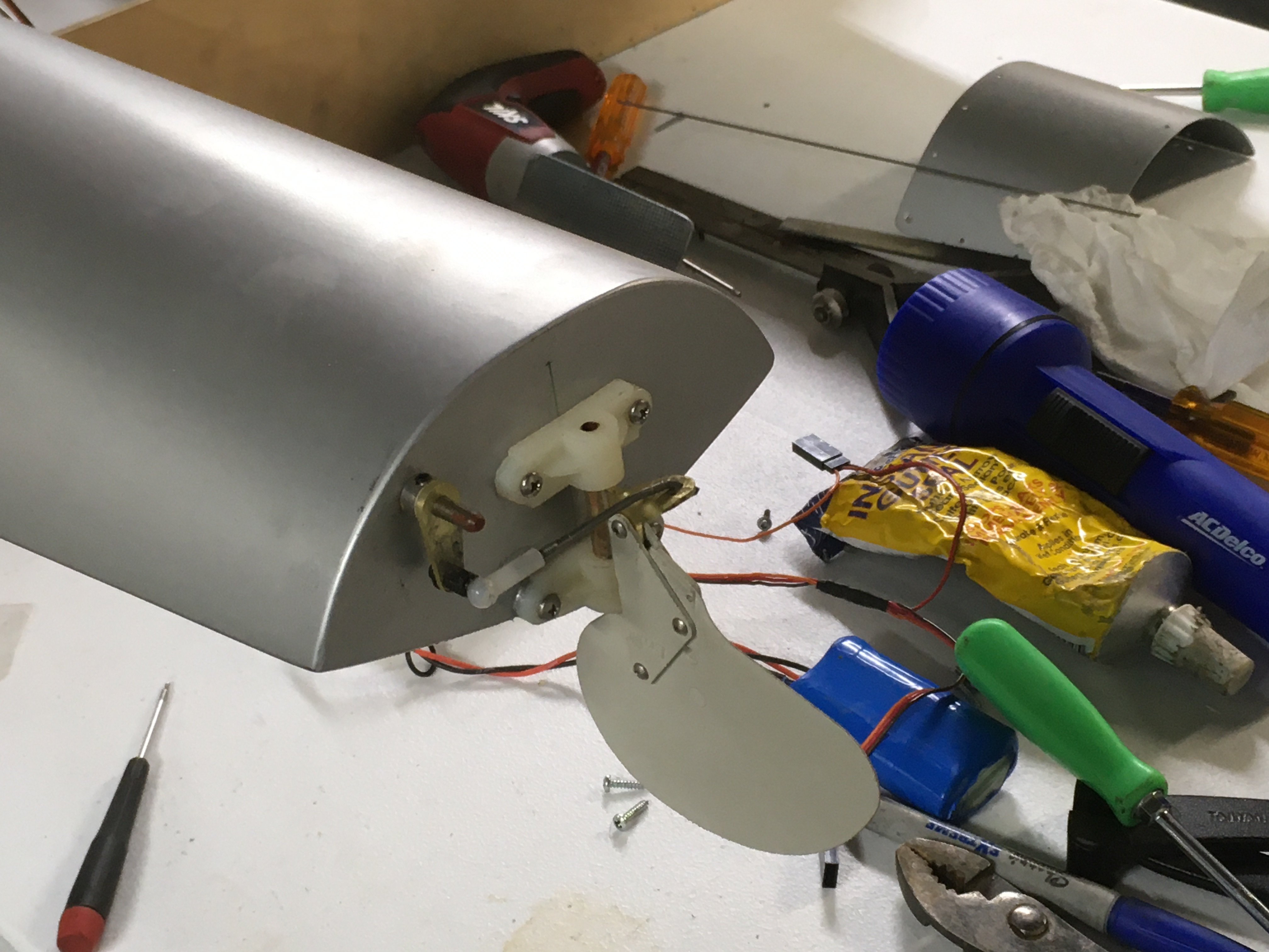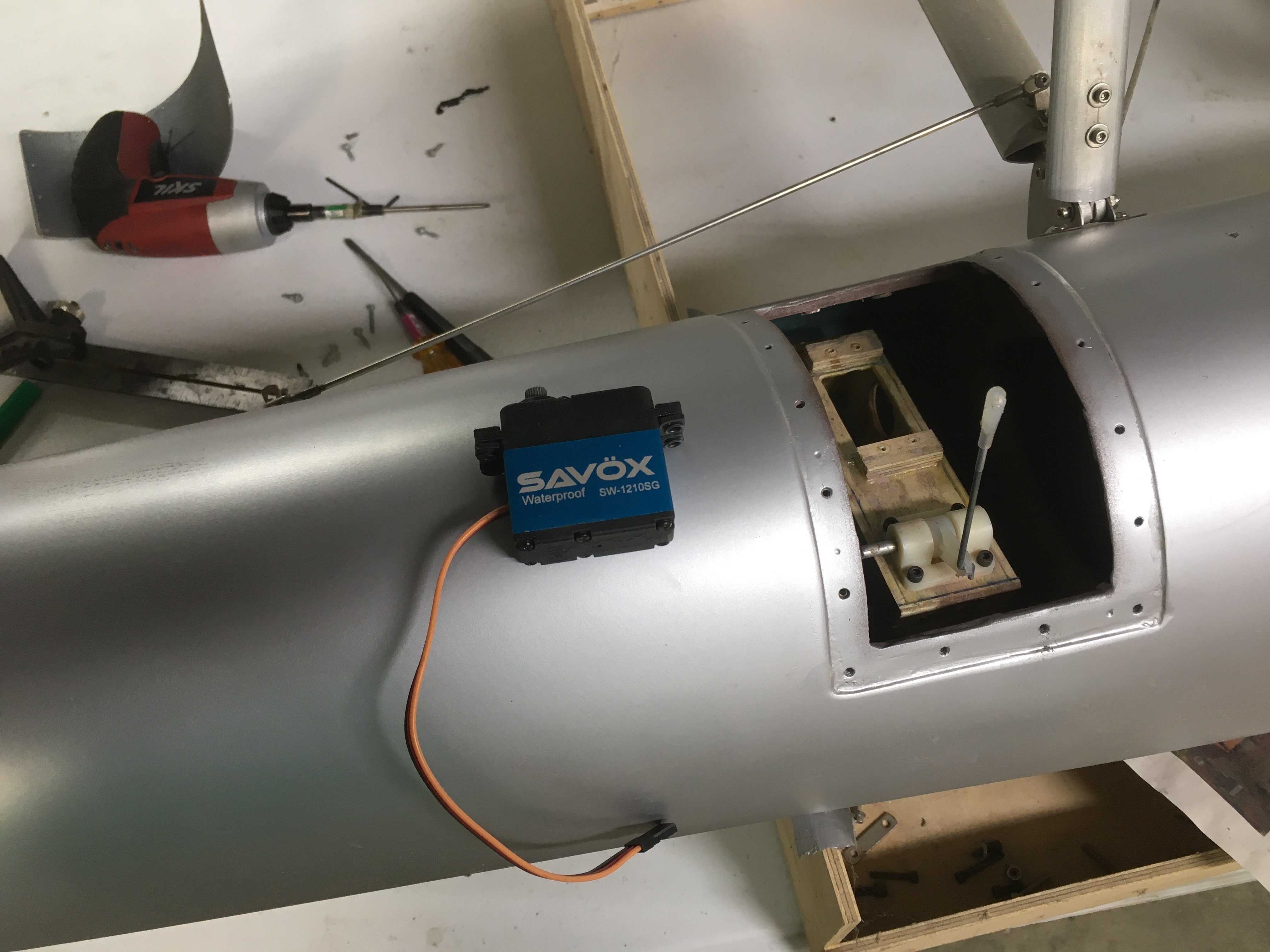 Been working on this plane since 2004. I'm painting with latex. I painted the fuselage about 4 years ago and the base white pulled off with the trim masking tape. Sanded the latex down with 80 grit today and put on two coats of Zinsser primer. Will hopefully get the flat black sprayed on the dash area before end of day. The plane sits on 50" Fiberglass Masters floats fitted with Sea Commander struts, G38 power. Old school stuff. Hoping to get it RTF by next saturday for the LHMAC Float Fly at Acme Dam located near Summerset PA. Need to finish the paint and install the radio system. I could cheat and just paint the plane white without trim?