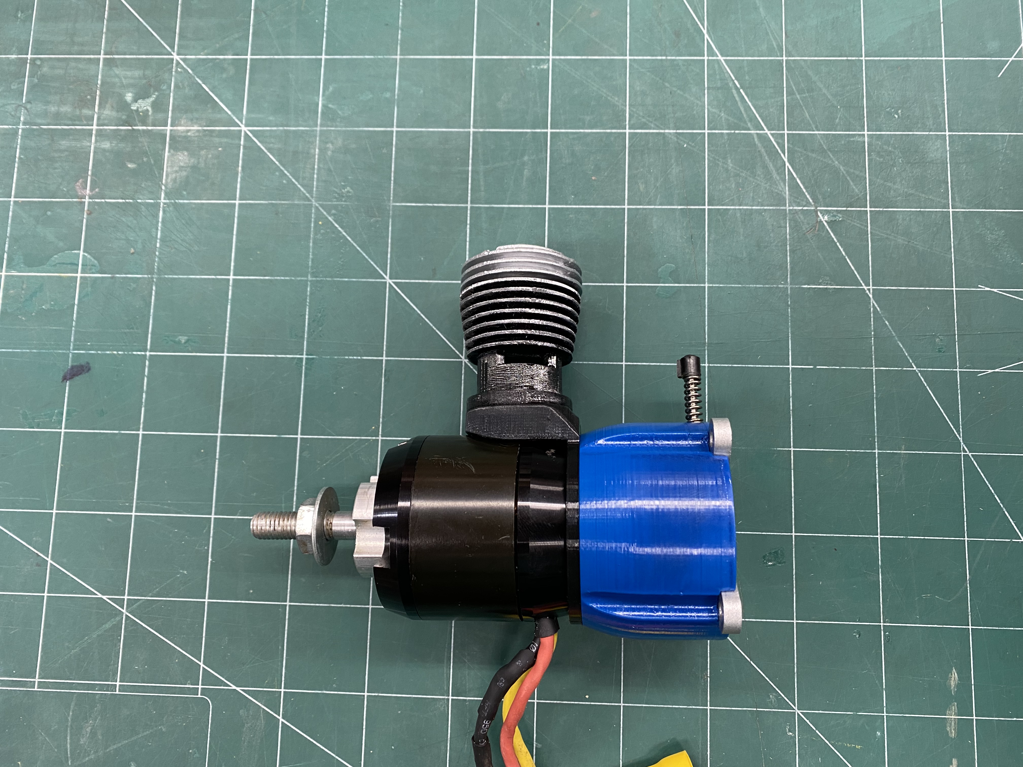 Unfortunately, not enough clearance between the crankcase flange and the spinner backplate while providing the motor with enough clearance to rotate.