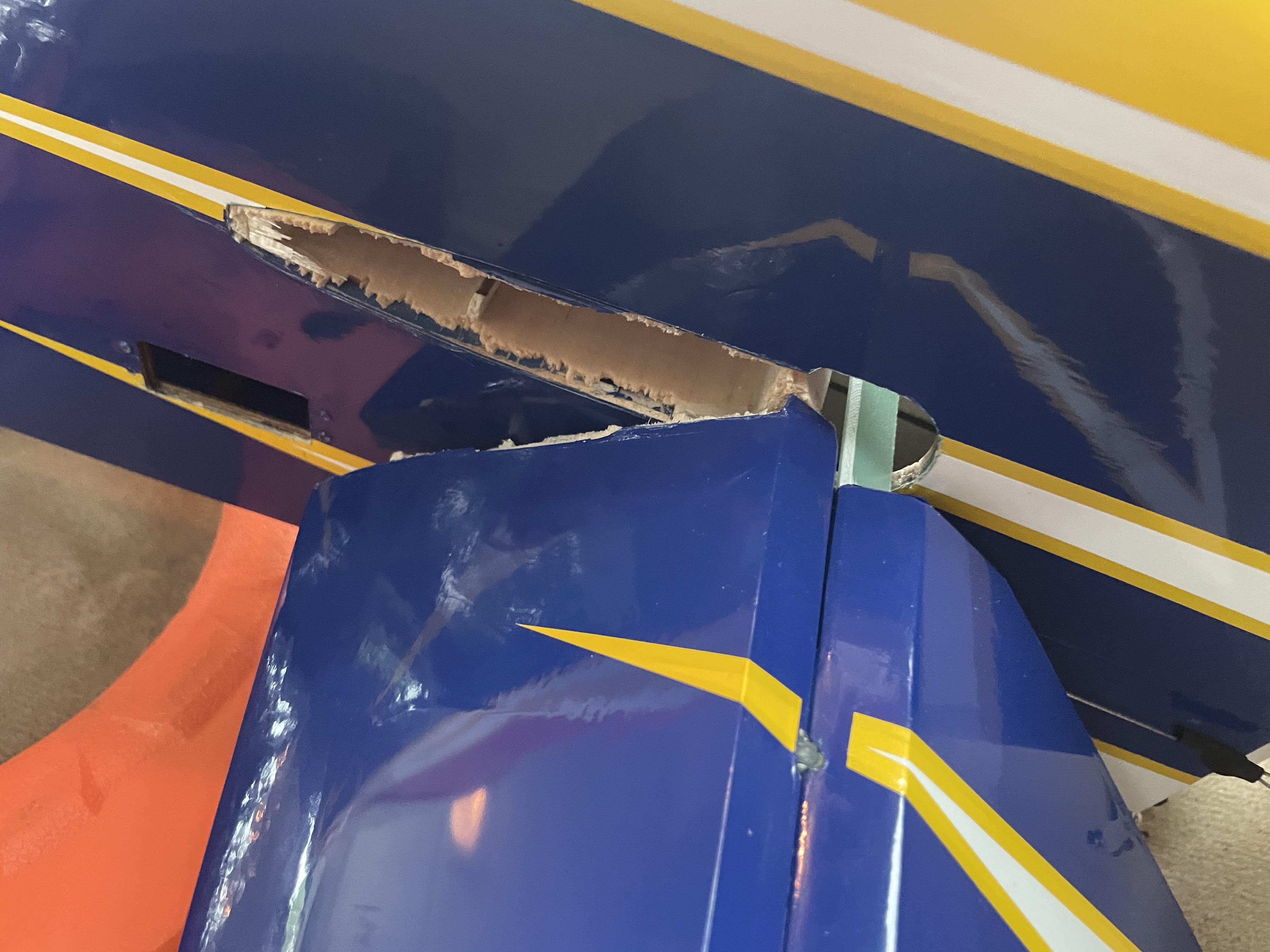At first thought I was thinking I would need to order a replacement stab and elevator and the left side of the stab was sheered off at the fuse.