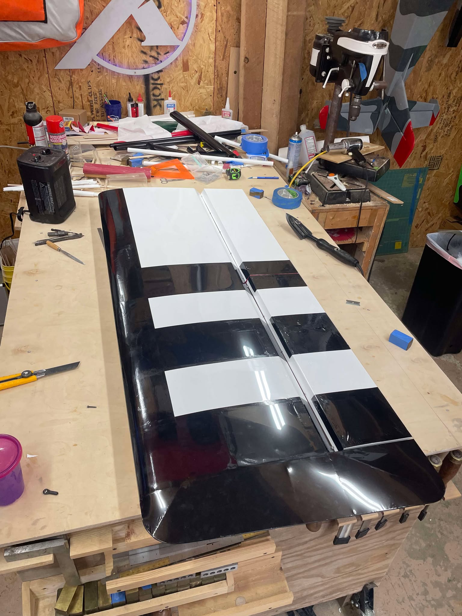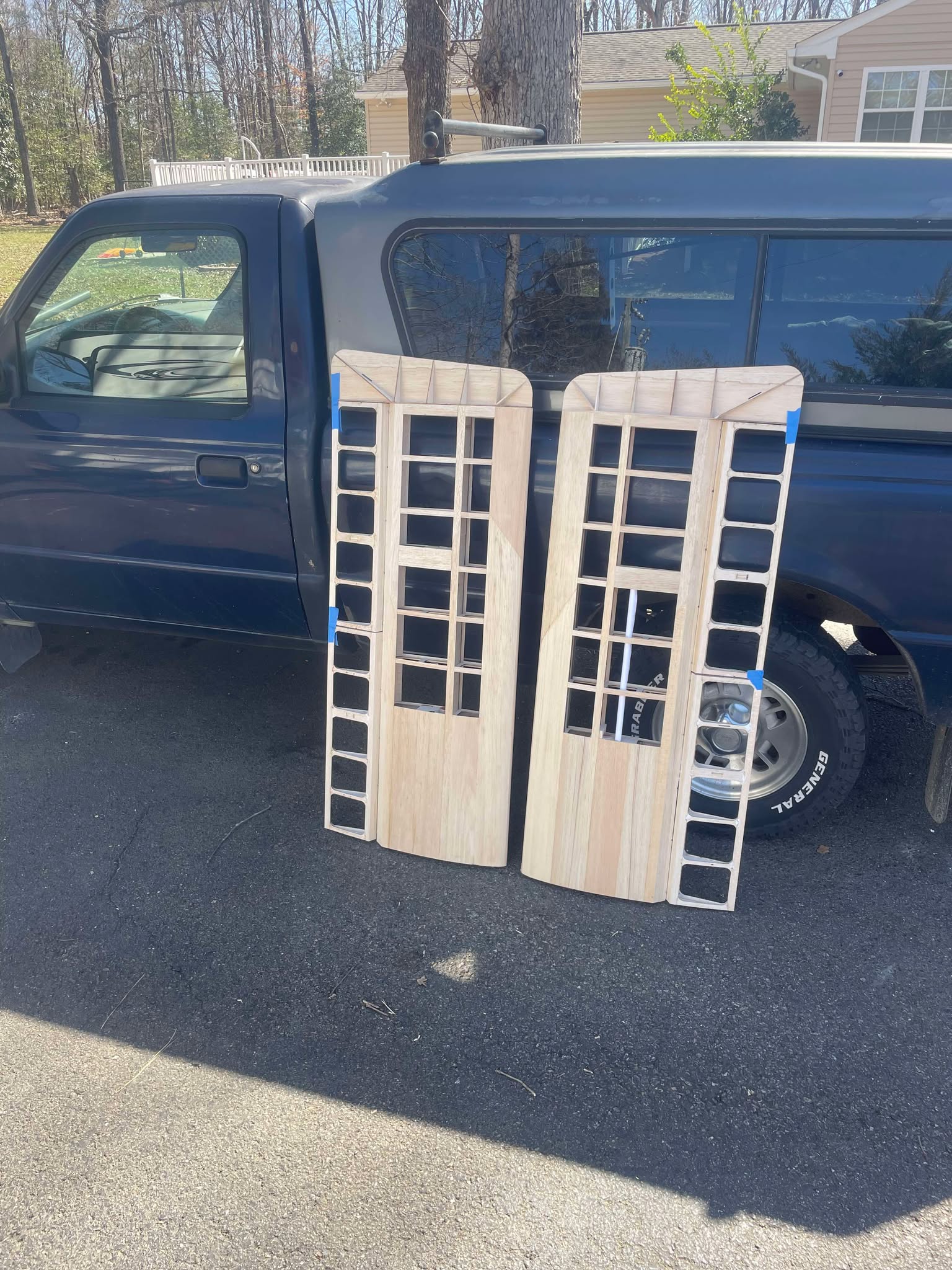 Nice looking plane, I remember you started that a while ago. Those big chocolate bar shaped wings fly good.Finally got back to work about 2 weeks ago on my big plane I designed. Finished up framing the wings and got started on covering yesterday.