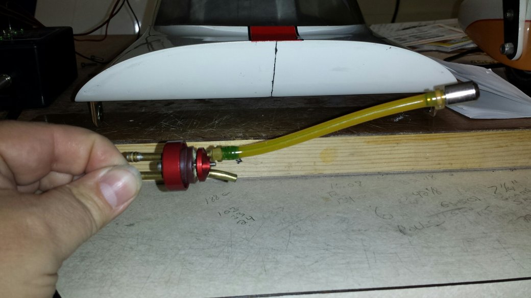 I decided I'm going to take my Carf Extra 330L flying tomorrow for the first time in over a year. I thought I should give it a once over tonight and make sure everything is flight ready. It turns out the clunk line was hard as a rock so I pulled the tank out and replaced the clunk line with Viton.