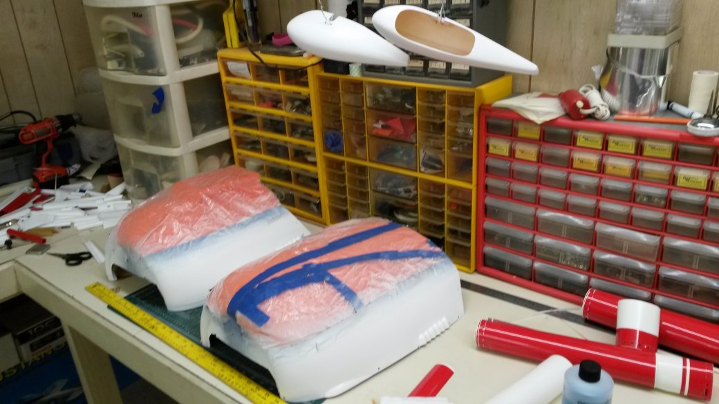 Dang, that is really nice Robert. Sooo, I don't suppose your wifey wants to paint another pilot bust huh?? LOL.... That Suk is going to be one heck of a nice change of pace from the original.I added a black pin stripe between the white and holographic chrome stripe on the fuse, wings and stabs. masked off the cowl and started the white paint. Also the pilot and wheel pants. I was having a lot of trouble getting paint to spray right and as it turns out a math error (doh) was the cause. I was instructed to mix paint and catalyst 1:1 then mix with reducer 1:1. I was mixing 2 Oz. of paint with 2 Oz. of catalyst. Then 2 Oz. of reducer. I should have been adding 4 Oz of reducer. I managed to get a couple of coats on and have sanded and prepped for a third when it warms up a little.