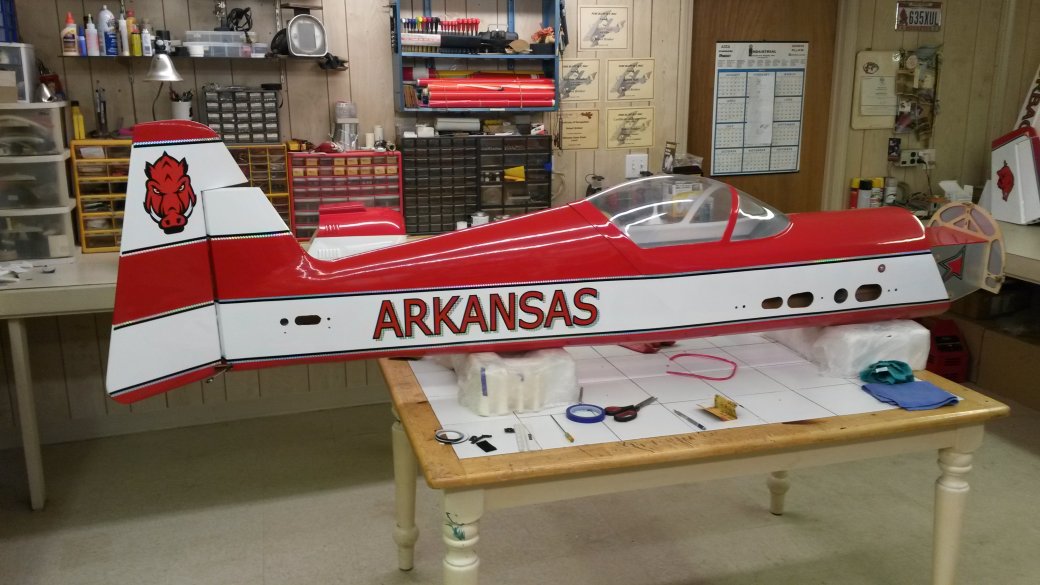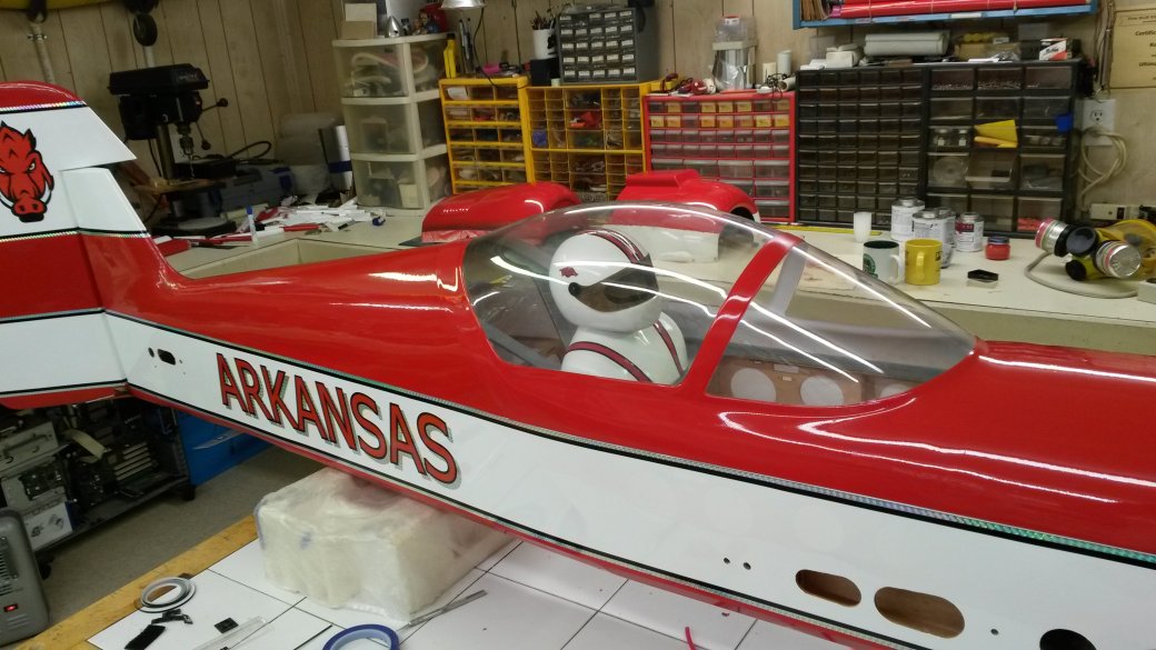 I put the final coat on the canopy and cowl halves . Couldn't resist setting the pilot in it. It's about time to start stripping the current flyer and installing in this one.But first I'm going to clean up the shop and make room. I have crap thrown everywhere and being only a 20' X 20' shop it's going to get crowded with two 40% in here.